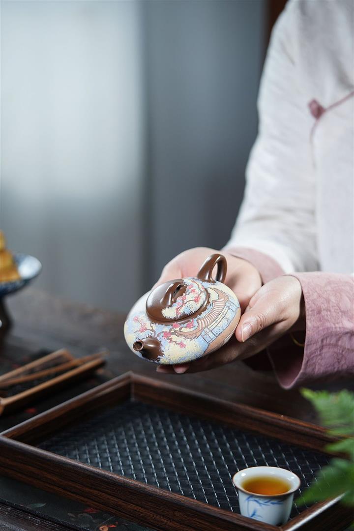 原礦紫朱泥手工梅花寒江茶壺POT6898
