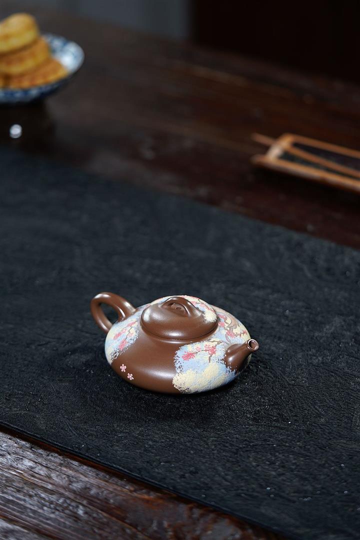 【泥料特點】砂土氣重,似淳實農民,日久使用,漸露鋒芒,養成變化,溫潤莊重。紫砂是壹種雙重氣孔結構的多孔性材質,氣孔微細,密度高。用紫砂壺沏茶,不失原味,且香不渙散,得茶之真香真味。紫砂使用越久,壺身色澤越發光亮照人,氣韻溫雅。紫砂壺長久使用器身會因撫摸擦拭,變得越發溫潤光澤。