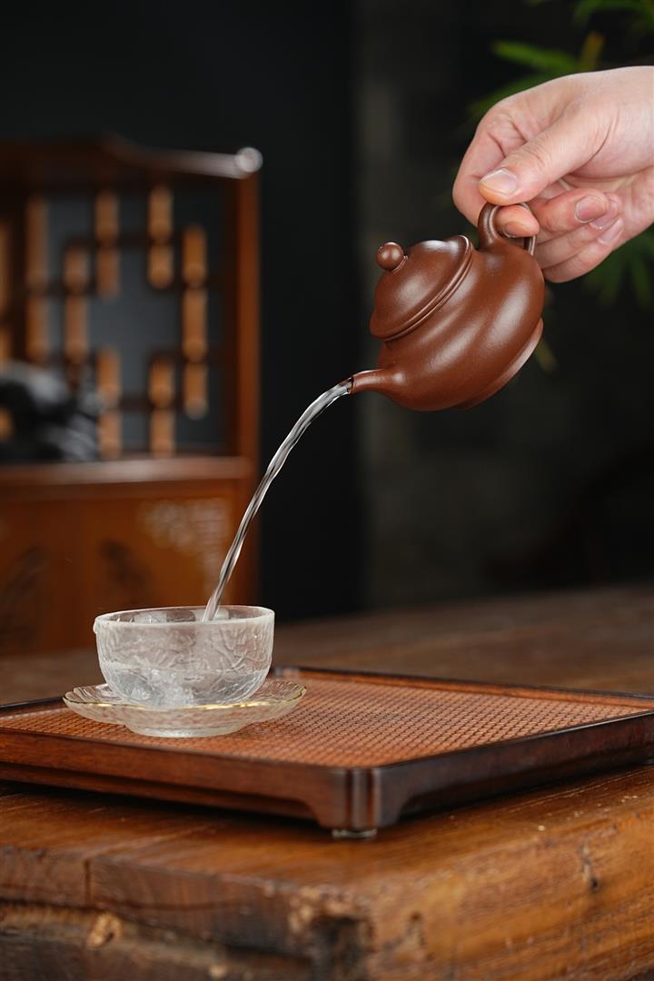 【泥料特點】砂土氣重,似淳實農民,日久使用,漸露鋒芒,養成變化,溫潤莊重。紫砂是壹種雙重氣孔結構的多孔性材質,氣孔微細,密度高。用紫砂壺沏茶,不失原味,且香不渙散,得茶之真香真味。紫砂使用越久,壺身色澤越發光亮照人,氣韻溫雅。紫砂壺長久使用器身會因撫摸擦拭,變得越發溫潤光澤。