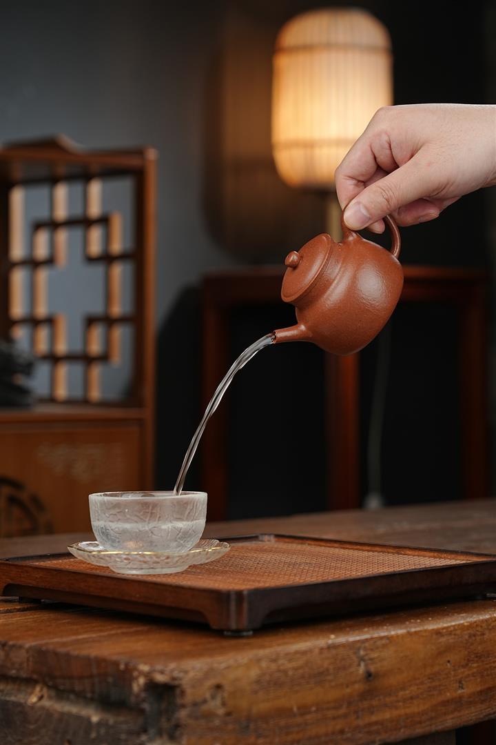 【泥料特點】砂土氣重,似淳實農民,日久使用,漸露鋒芒,養成變化,溫潤莊重。紫砂是壹種雙重氣孔結構的多孔性材質,氣孔微細,密度高。用紫砂壺沏茶,不失原味,且香不渙散,得茶之真香真味。紫砂使用越久,壺身色澤越發光亮照人,氣韻溫雅。紫砂壺長久使用器身會因撫摸擦拭,變得越發溫潤光澤。