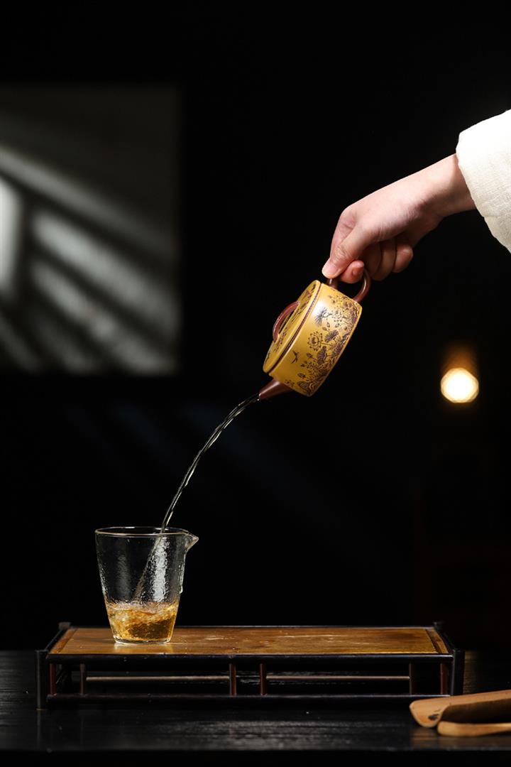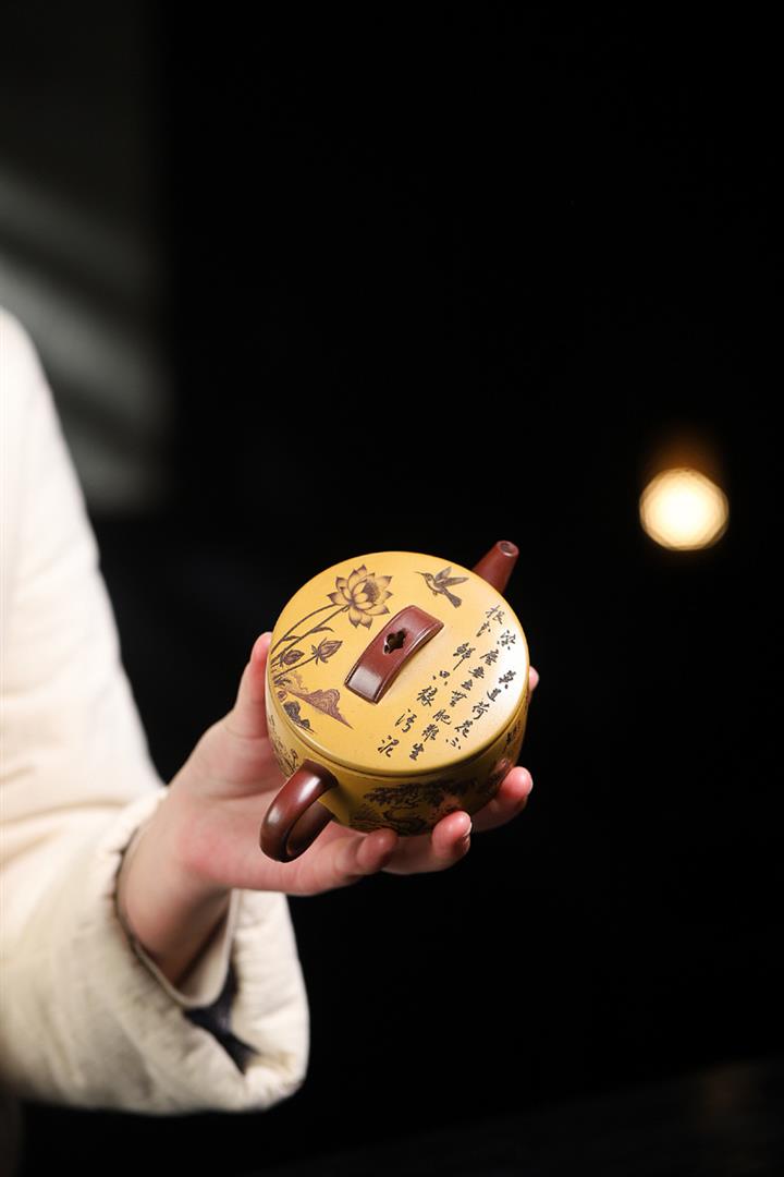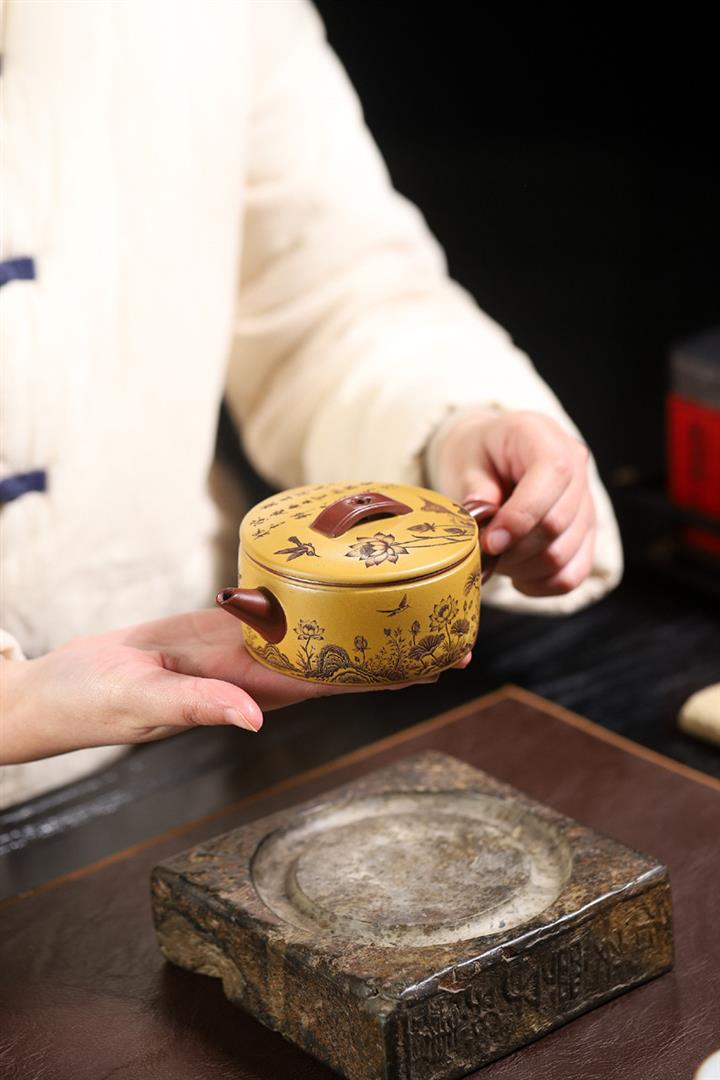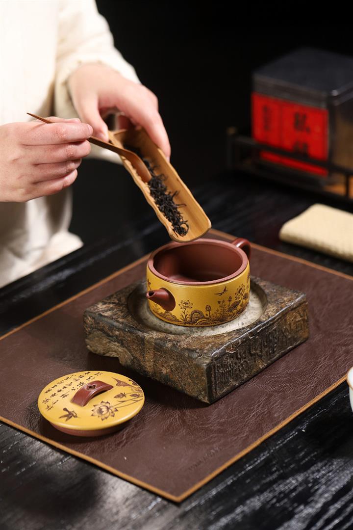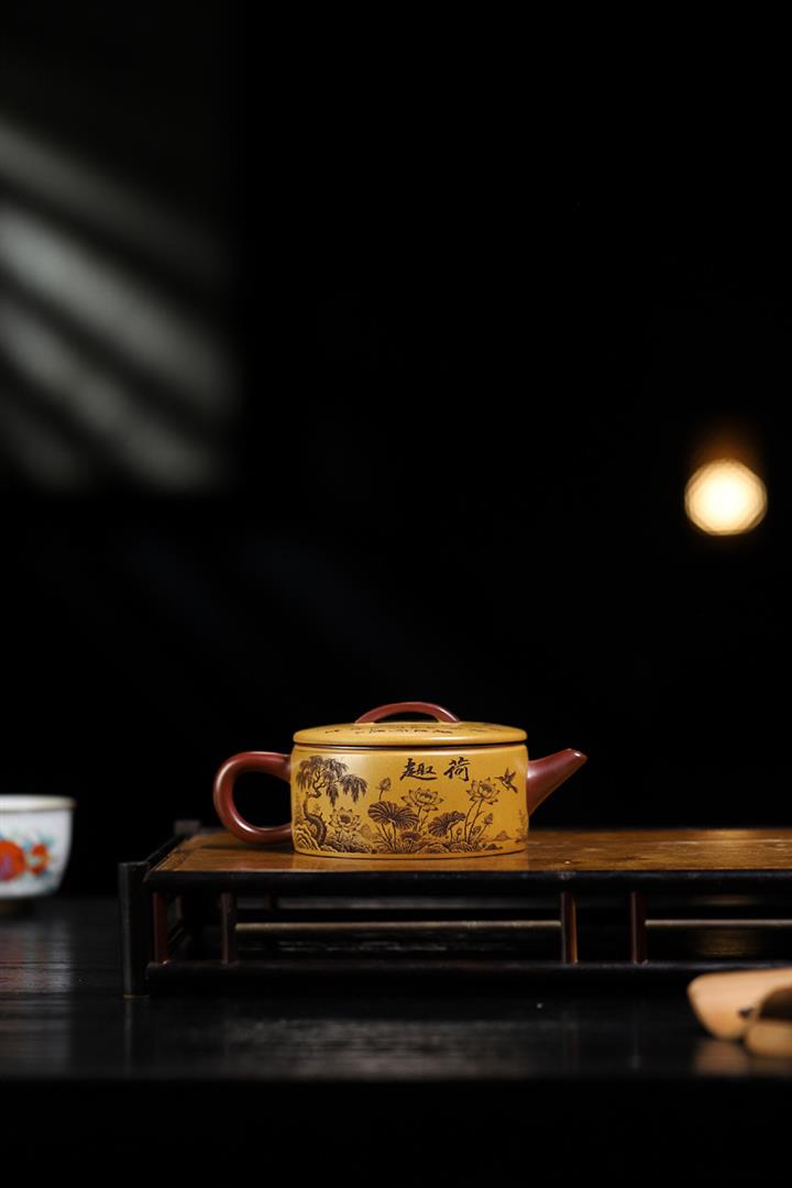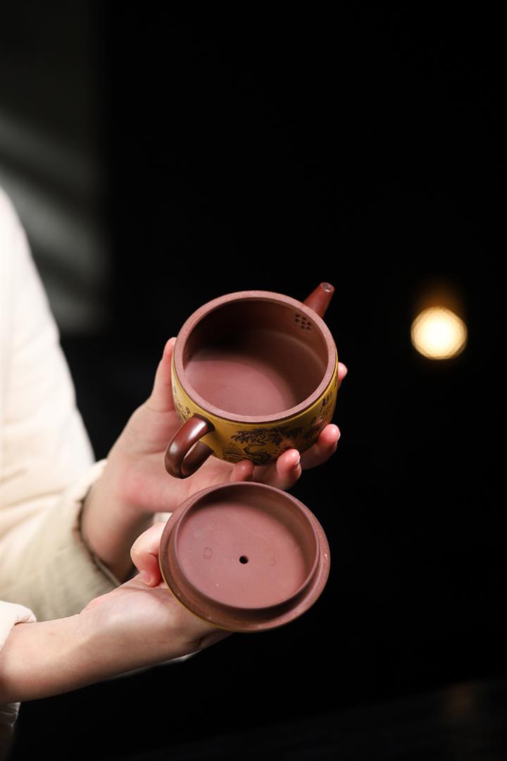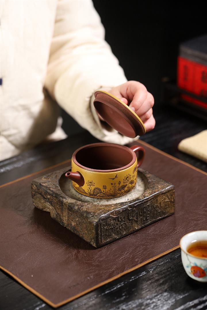 原礦玄鐵石黃琺瑯柱礎泡茶壺POT7852