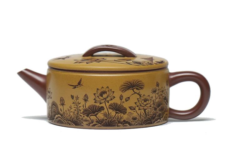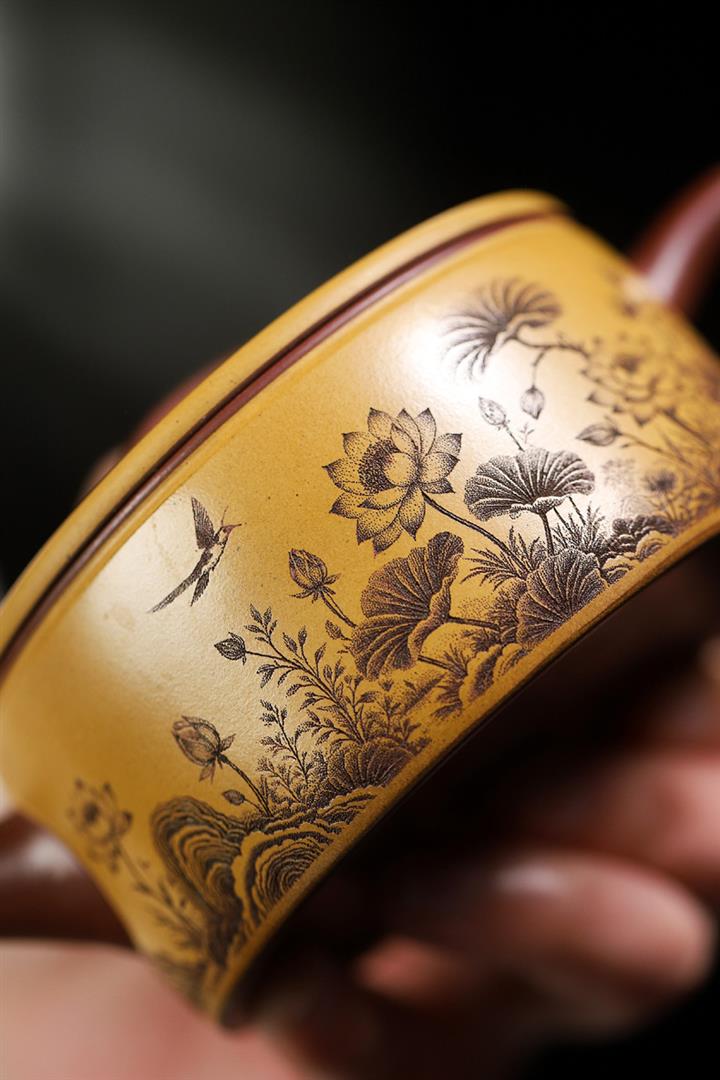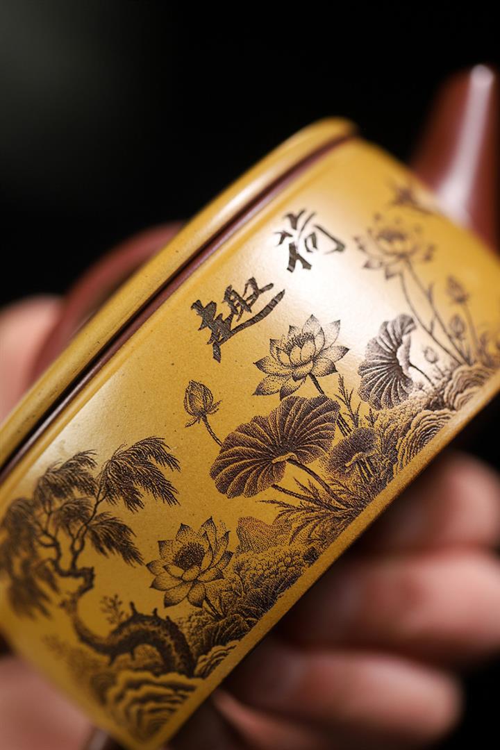 180cc原礦龍血砂/黃金朱泥荷趣漢瓦泡茶壺POT9806