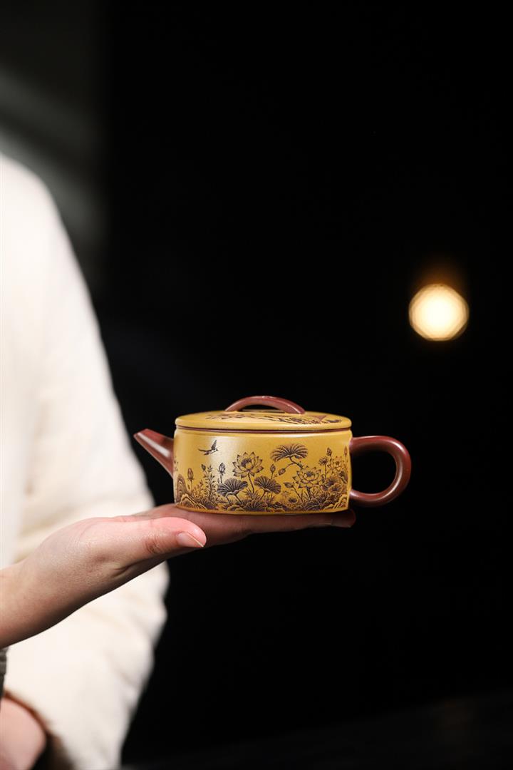 原礦玄鐵石黃琺瑯笑櫻泡茶壺POT7853