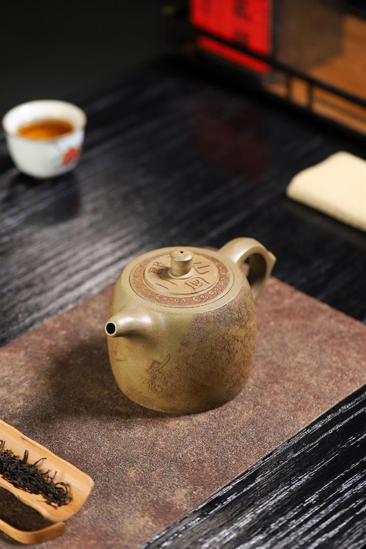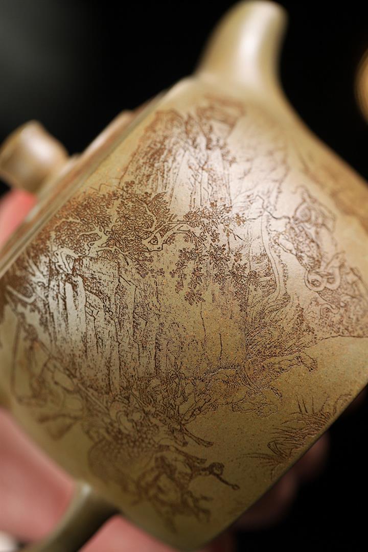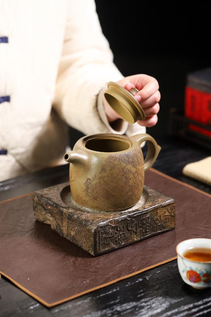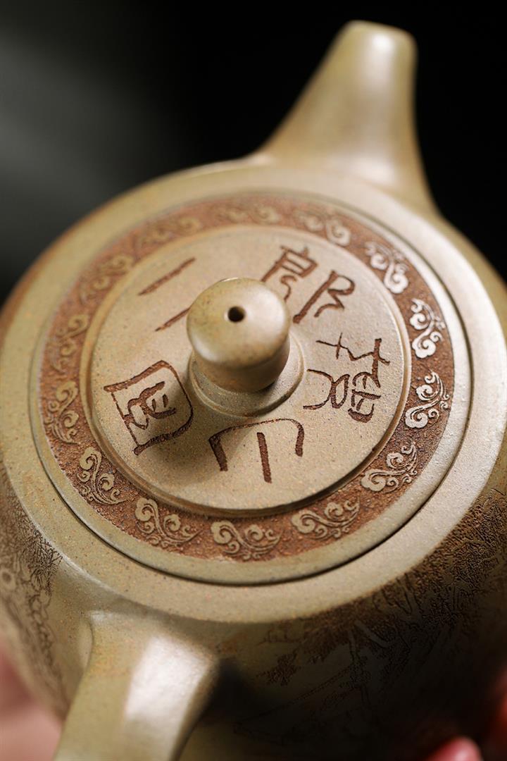 原礦綠泥手工刻繪茶壺POT4164