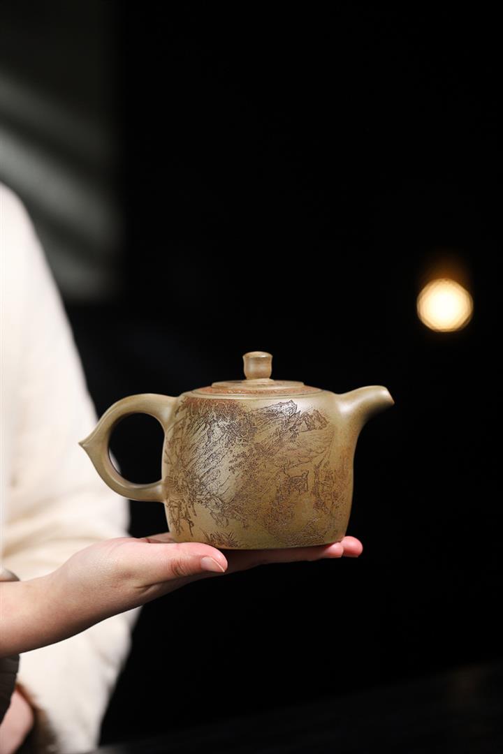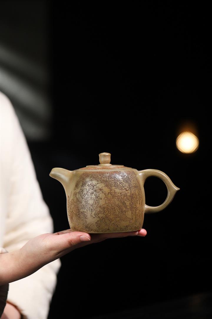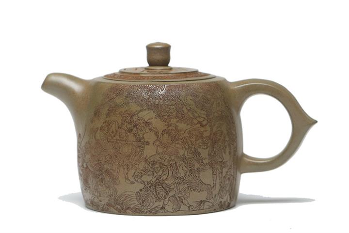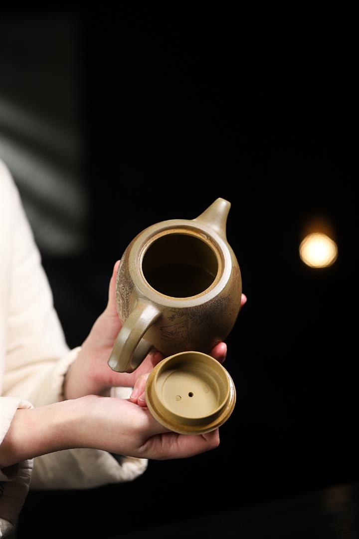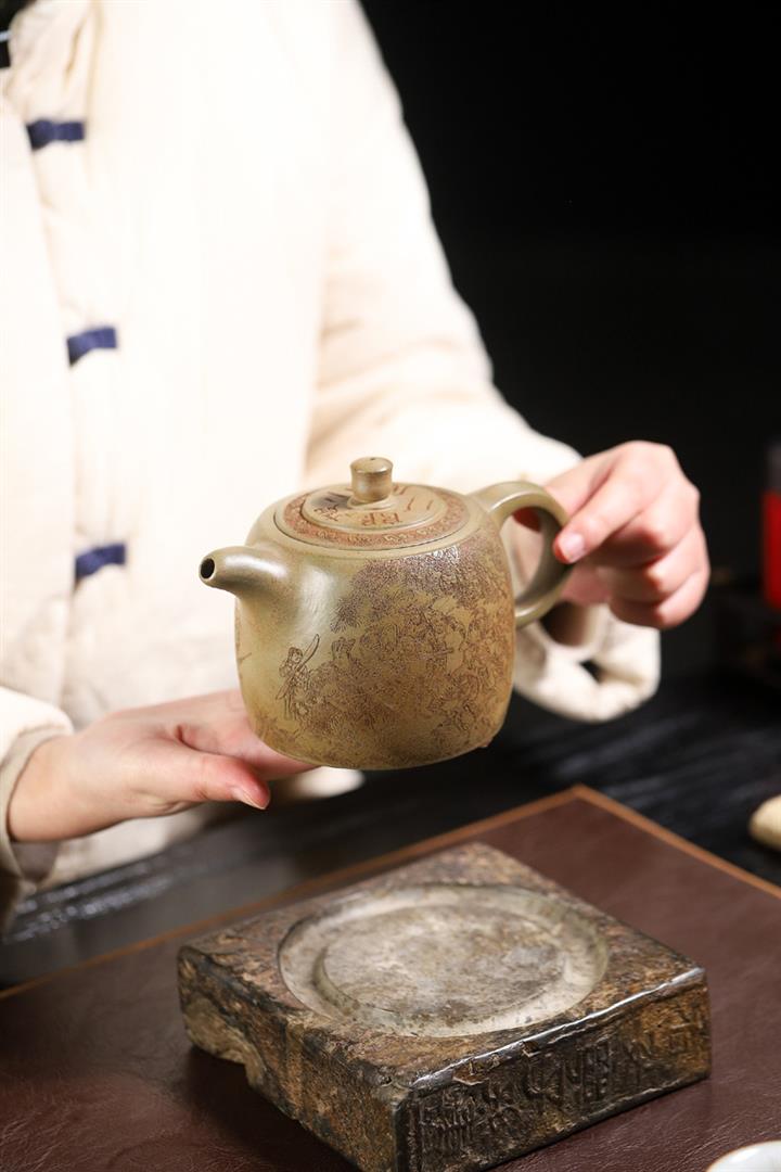 原礦綠泥手工刻繪茶壺POT4164