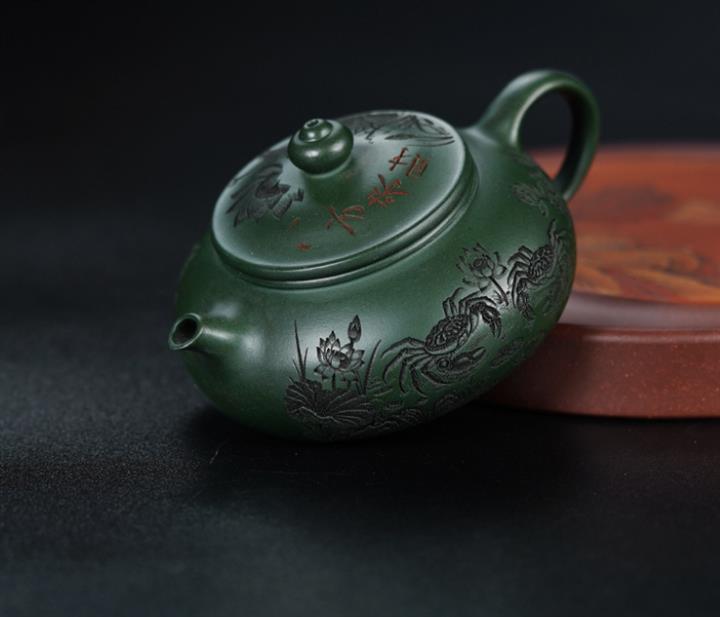 150cc原礦綠泥寒江八方來財泡茶壺POT9810