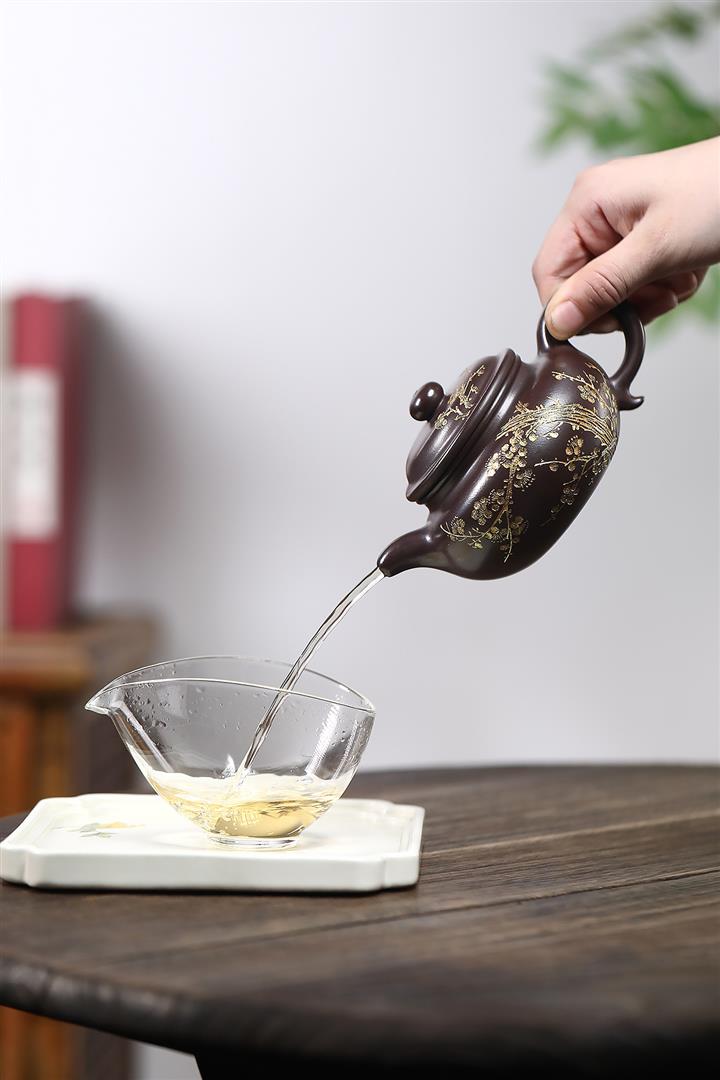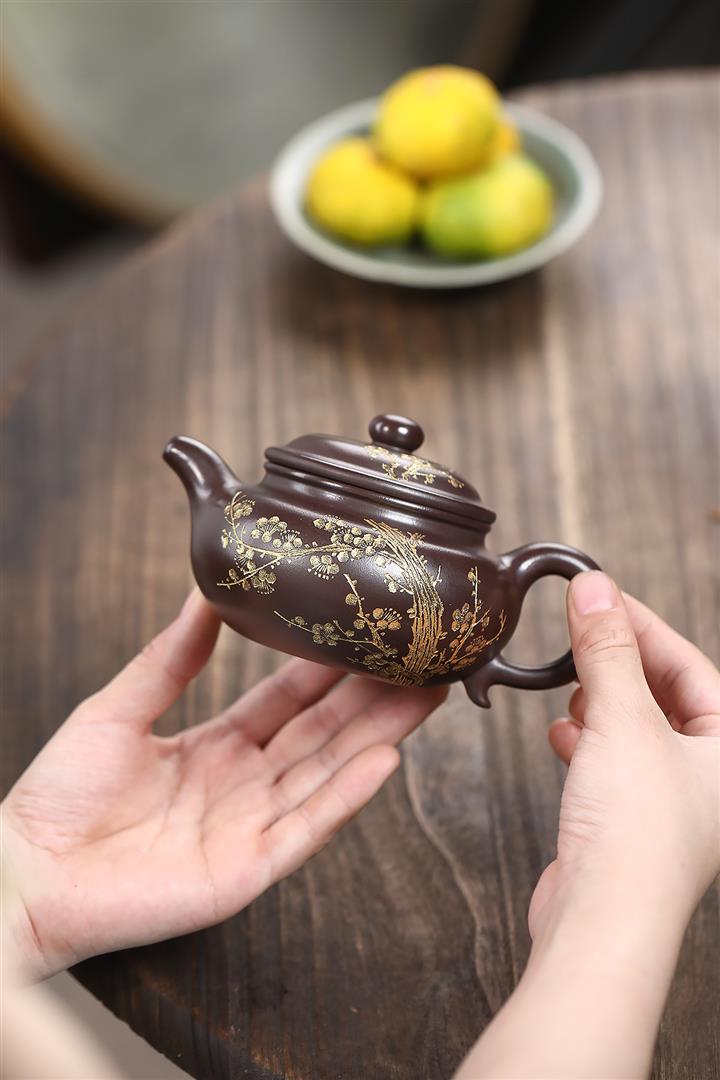 【作品介紹】此款壺形線條流暢,壺把,壺嘴,壺身壹氣呵成栩栩如生,是收藏把玩的好壺,泥料色澤古樸典雅,日久使用,漸露鋒芒,養成變化快,溫潤莊重,用其泡茶,使用的年代久,壺身就溫潤,泡出來的茶湯也就醇郁芳馨。