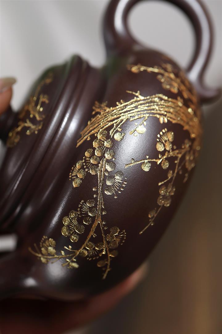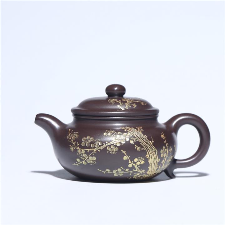 180cc原礦石黃泥逸瓢刻繪茶壺POT8361
