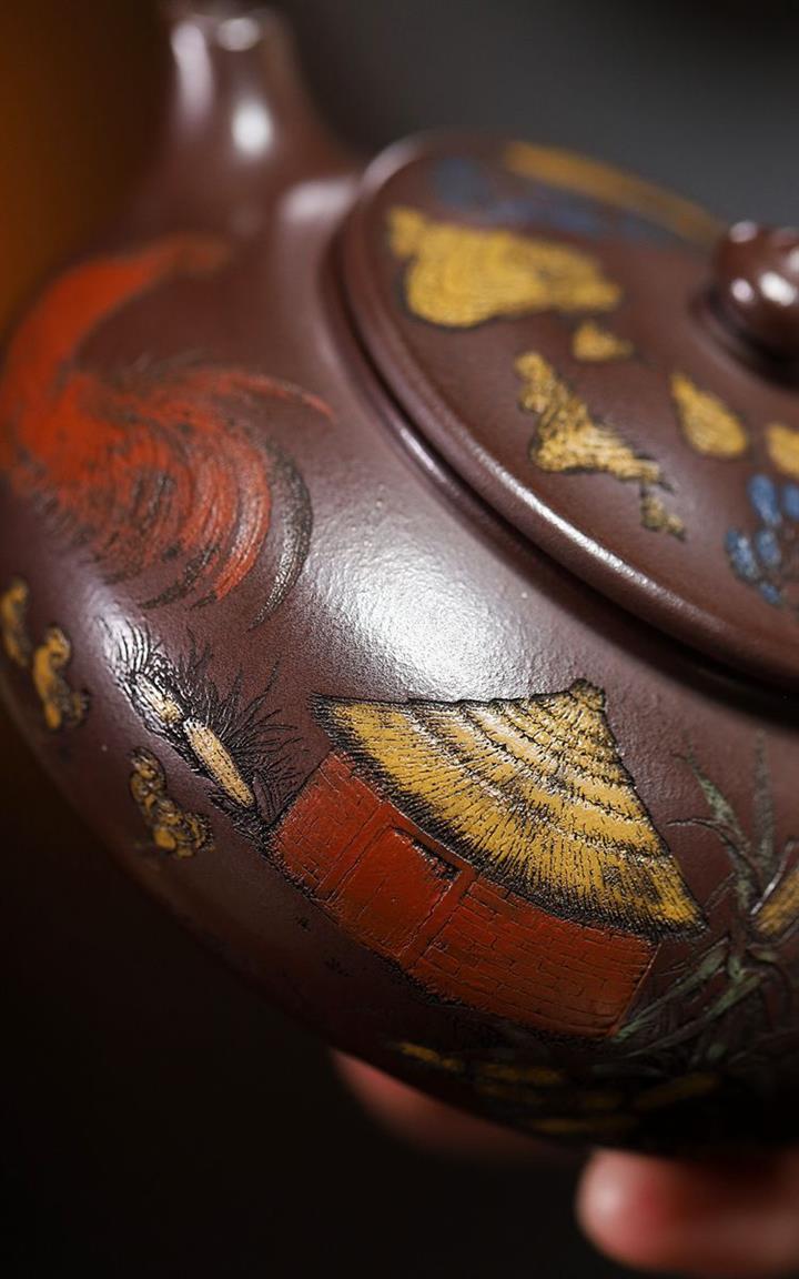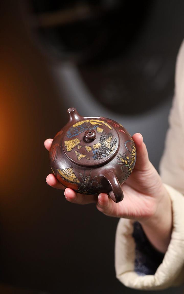 170cc原礦紫泥刻繪寒江泡茶壺POT9815