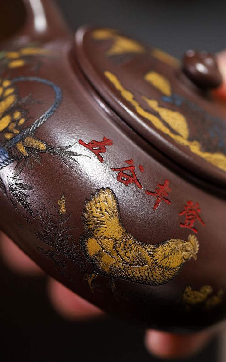 原礦大紅袍描金容天名家手制茶壺POT7770