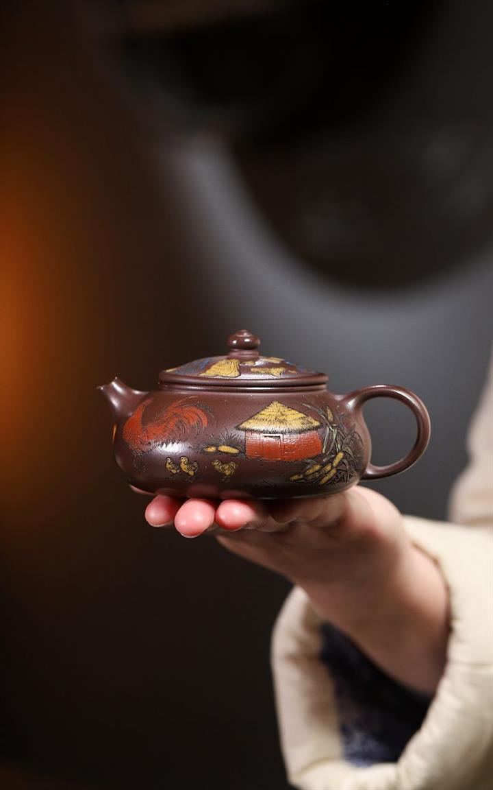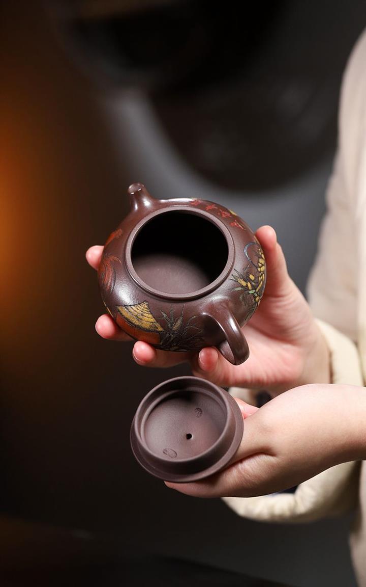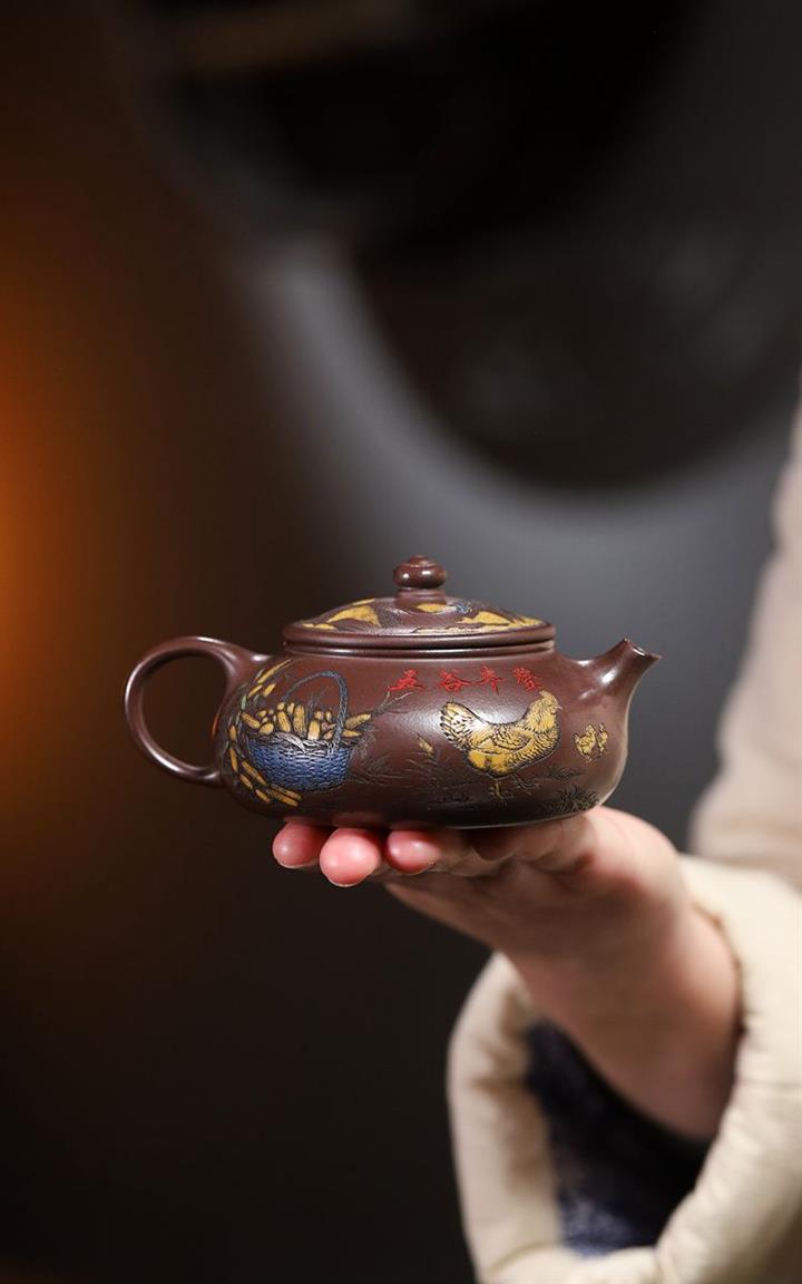 【泥料特點】砂土氣重,似淳實農民,日久使用,漸露鋒芒,養成變化,溫潤莊重。紫砂是壹種雙重氣孔結構的多孔性材質,氣孔微細,密度高。用紫砂壺沏茶,不失原味,且香不渙散,得茶之真香真味。紫砂使用越久,壺身色澤越發光亮照人,氣韻溫雅。紫砂壺長久使用器身會因撫摸擦拭,變得越發溫潤光澤。