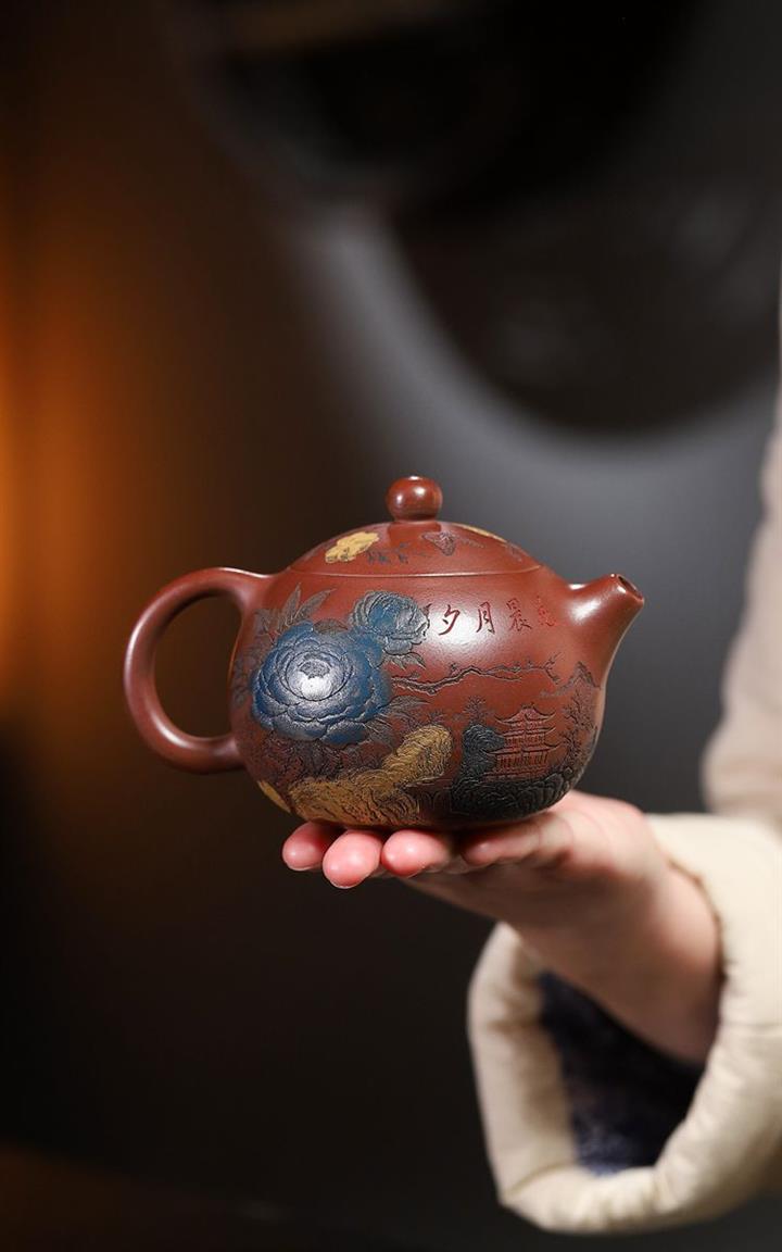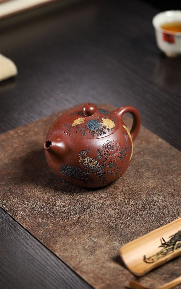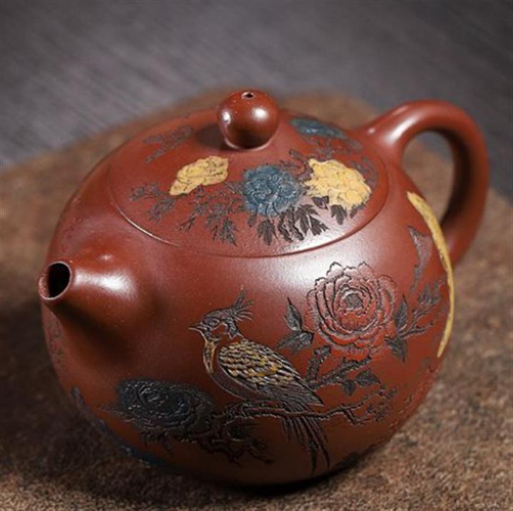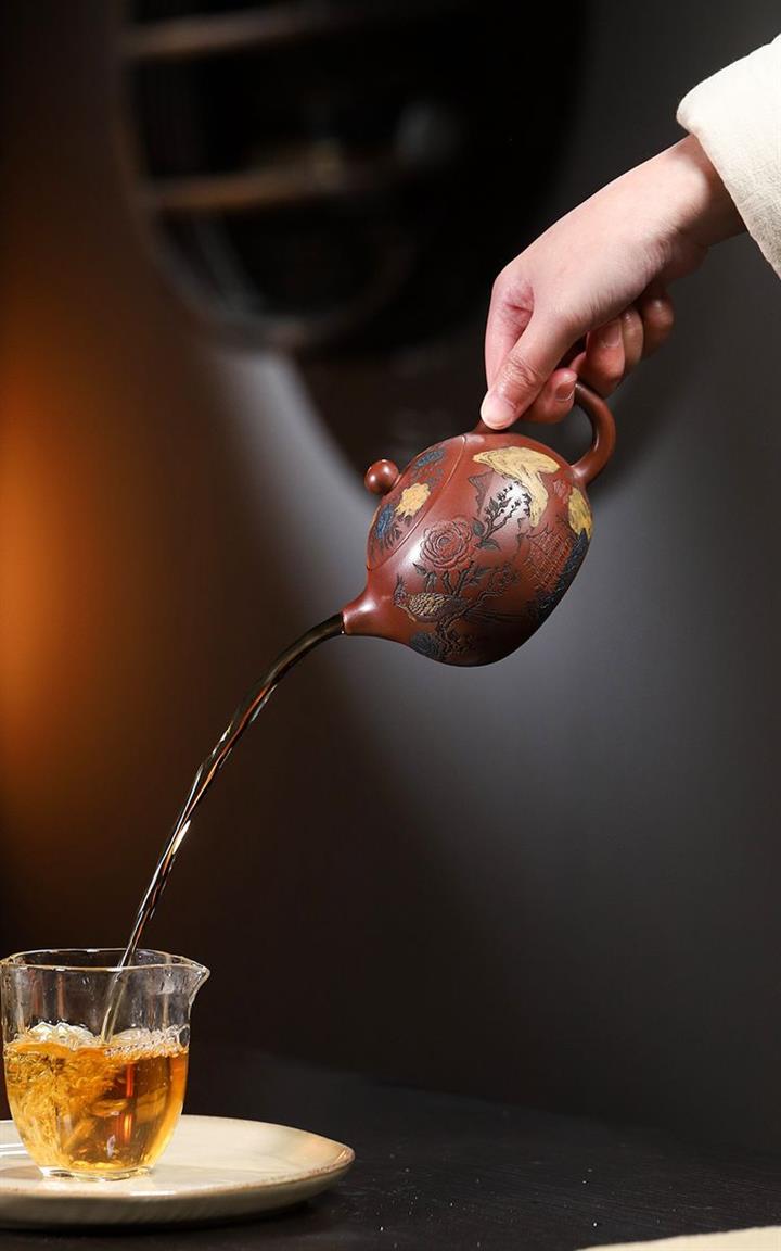 【泥料特點】砂土氣重,似淳實農民,日久使用,漸露鋒芒,養成變化,溫潤莊重。紫砂是壹種雙重氣孔結構的多孔性材質,氣孔微細,密度高。用紫砂壺沏茶,不失原味,且香不渙散,得茶之真香真味。紫砂使用越久,壺身色澤越發光亮照人,氣韻溫雅。紫砂壺長久使用器身會因撫摸擦拭,變得越發溫潤光澤。