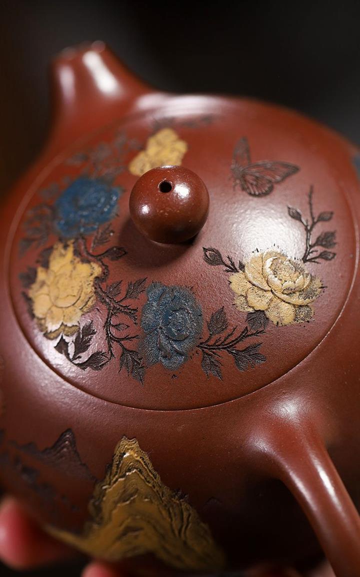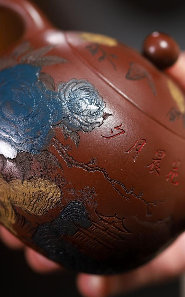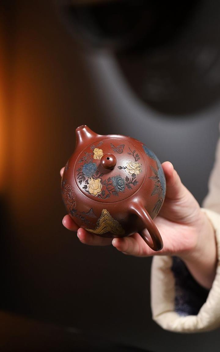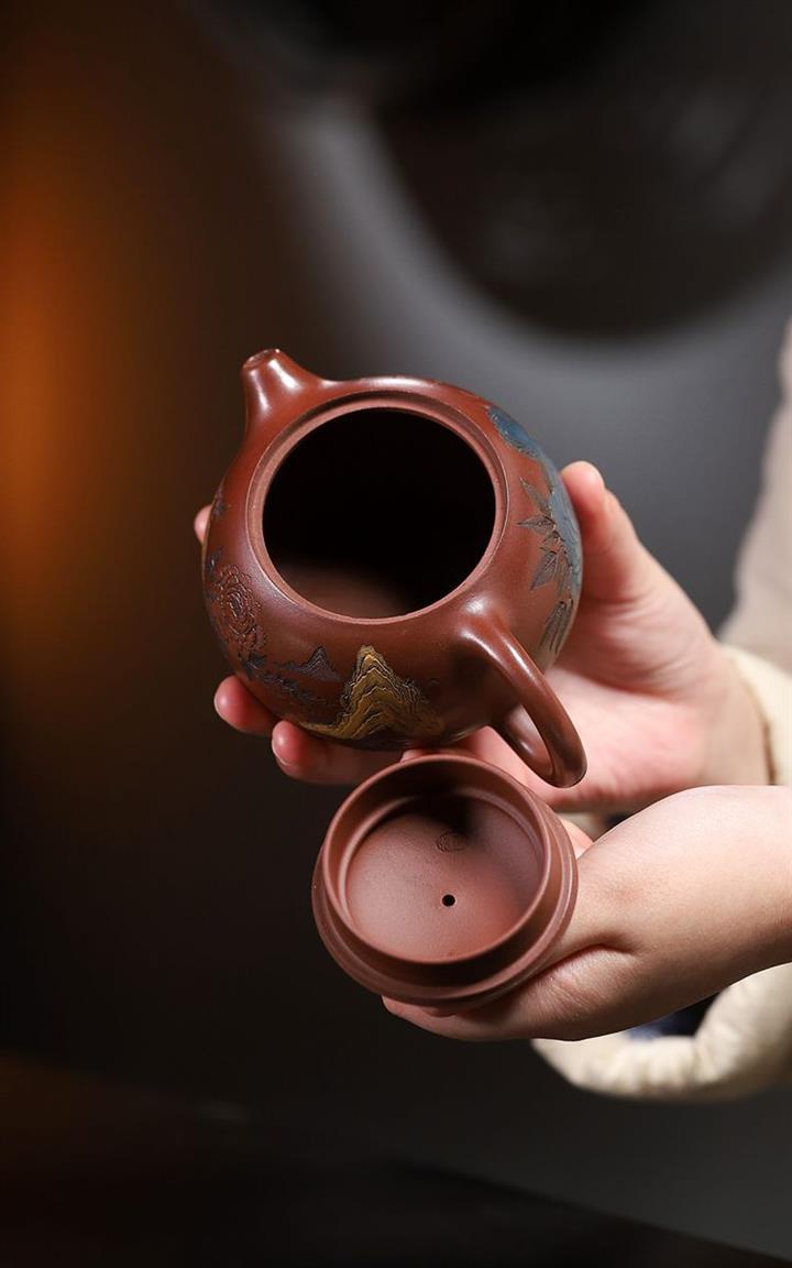 原礦紫泥描金曲壺POT4671