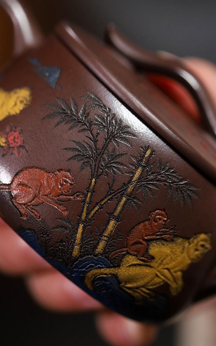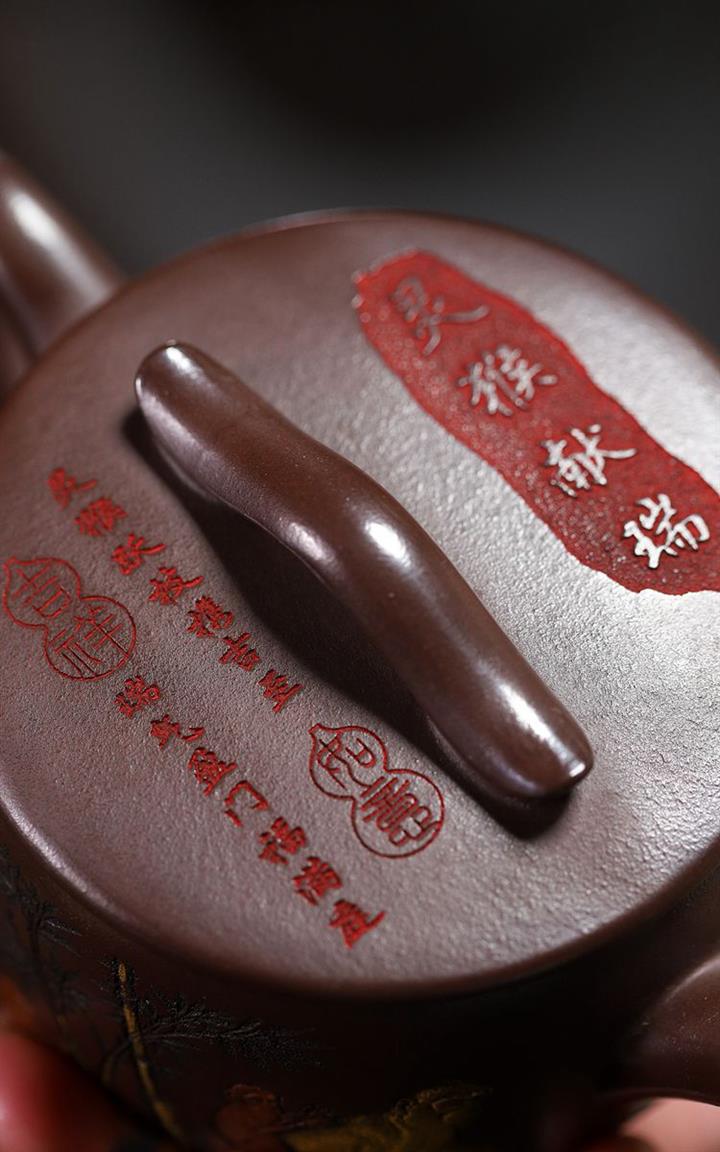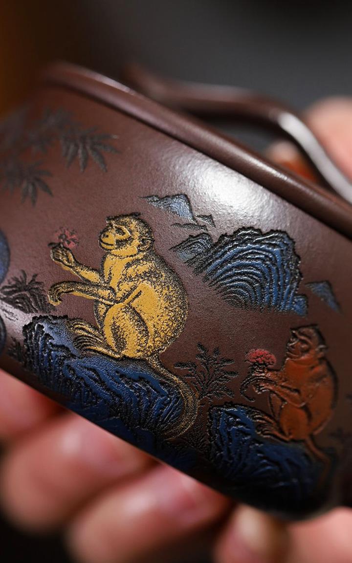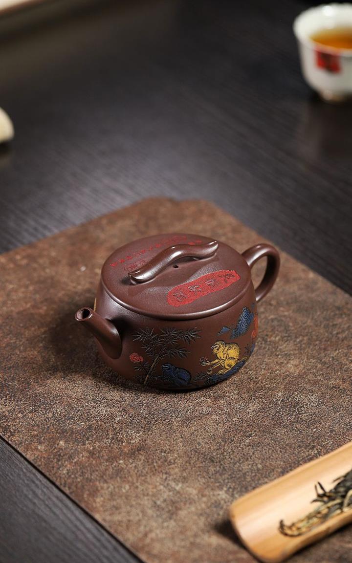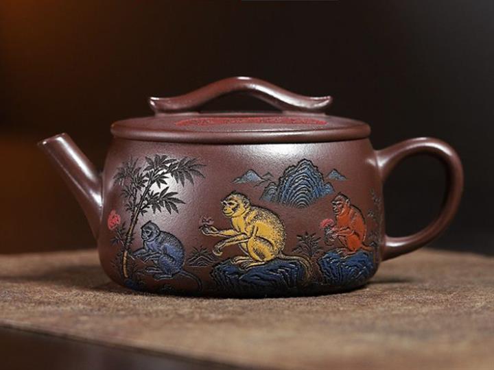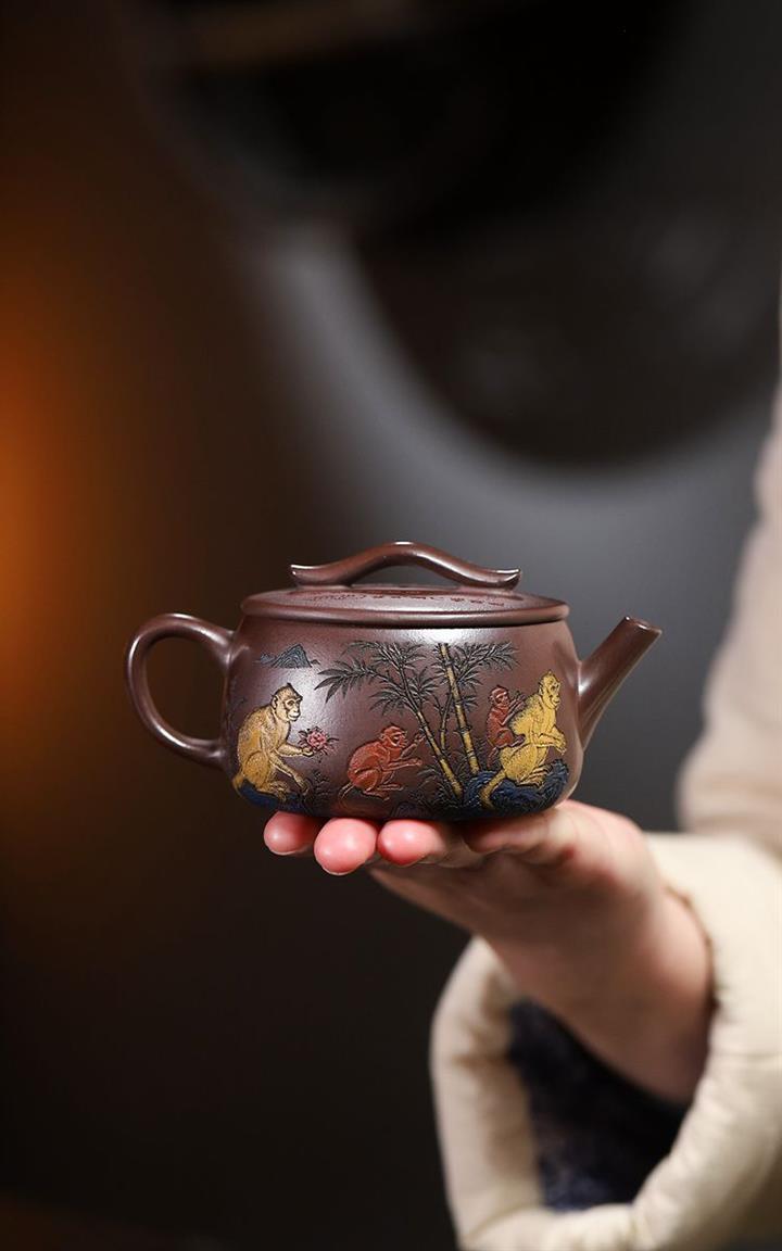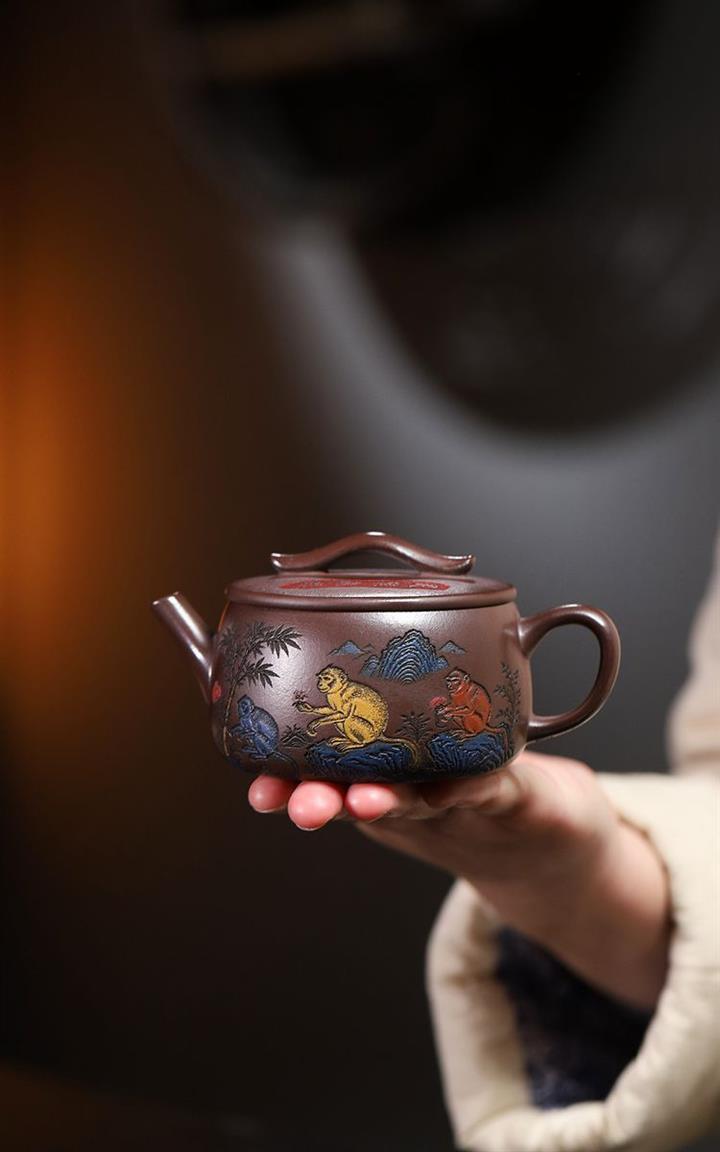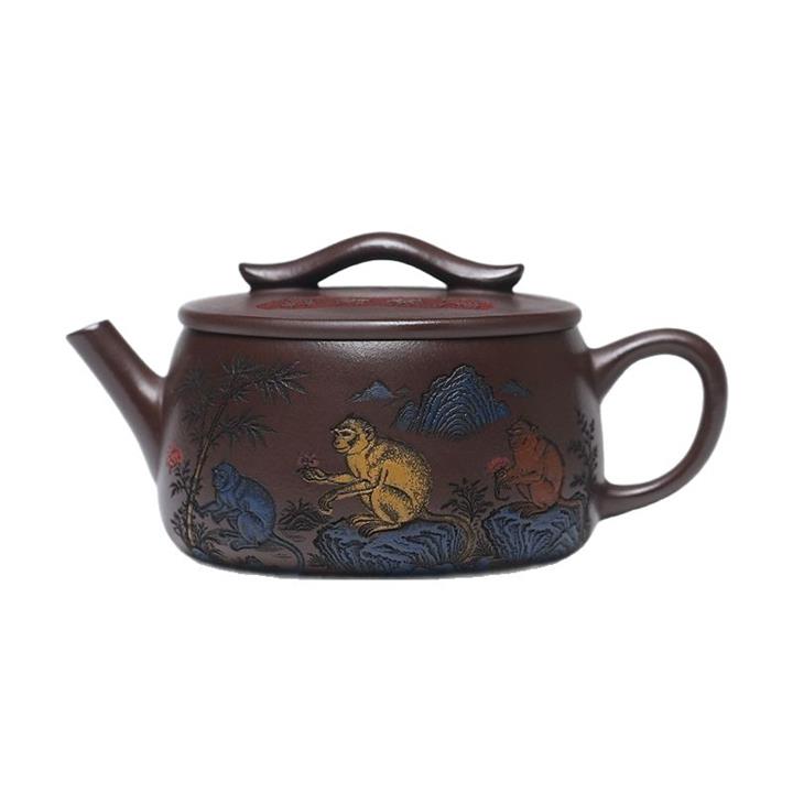 180cc原礦紫泥靈猴祥瑞漢瓦泡茶壺POT9817