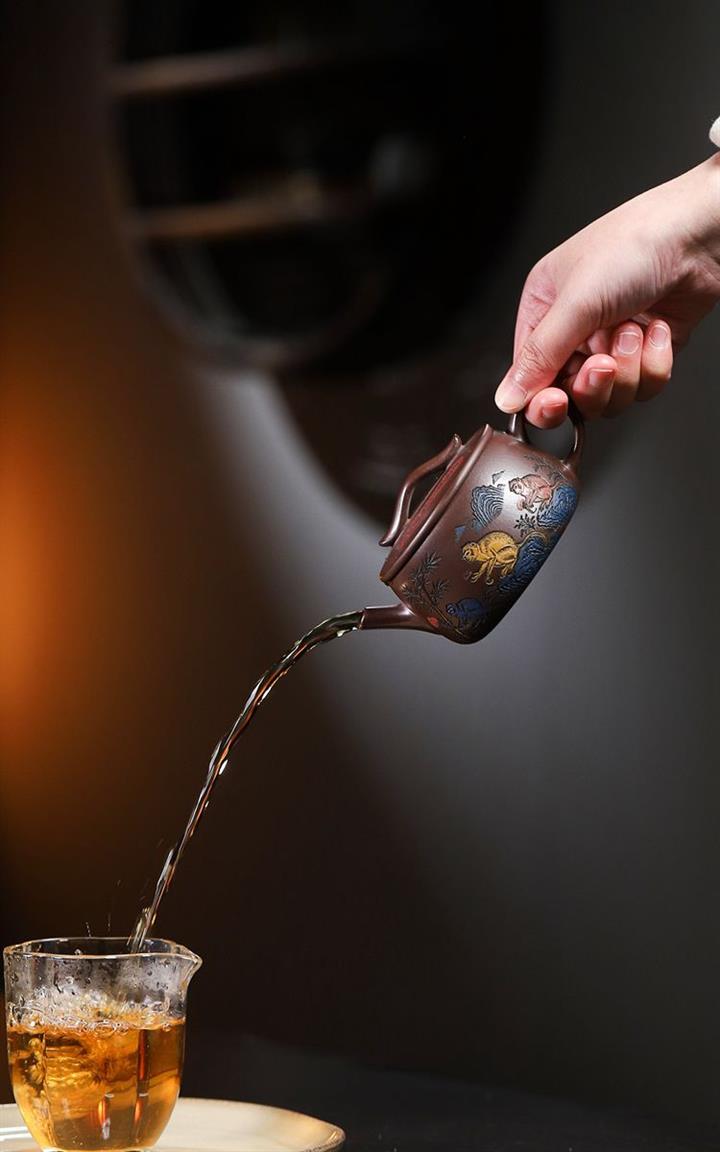 【泥料特點】砂土氣重,似淳實農民,日久使用,漸露鋒芒,養成變化,溫潤莊重。紫砂是壹種雙重氣孔結構的多孔性材質,氣孔微細,密度高。用紫砂壺沏茶,不失原味,且香不渙散,得茶之真香真味。紫砂使用越久,壺身色澤越發光亮照人,氣韻溫雅。紫砂壺長久使用器身會因撫摸擦拭,變得越發溫潤光澤。