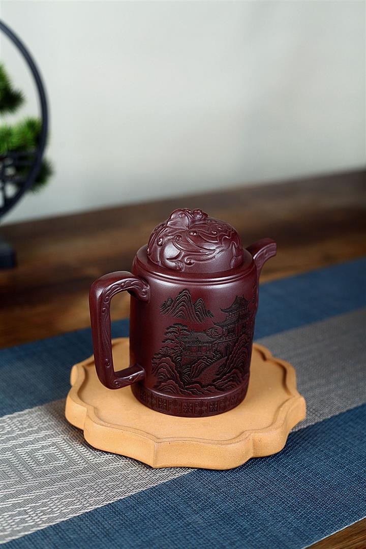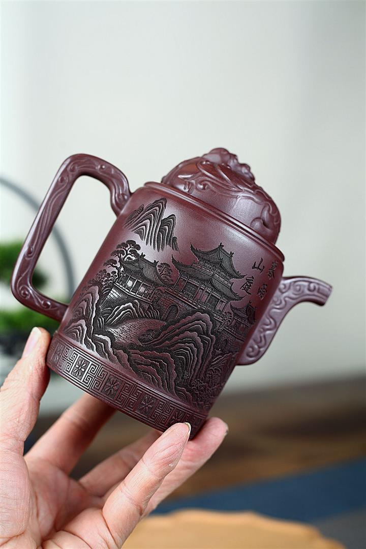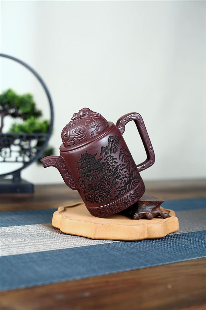 400cc原礦紫泥暮雨山庭龍璽汲直泡茶壺POT9821