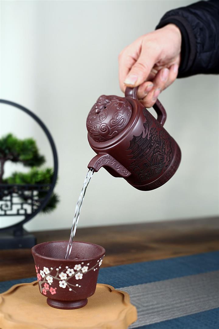 【泥料特點】砂土氣重,似淳實農民,日久使用,漸露鋒芒,養成變化,溫潤莊重。紫砂是壹種雙重氣孔結構的多孔性材質,氣孔微細,密度高。用紫砂壺沏茶,不失原味,且香不渙散,得茶之真香真味。紫砂使用越久,壺身色澤越發光亮照人,氣韻溫雅。紫砂壺長久使用器身會因撫摸擦拭,變得越發溫潤光澤。