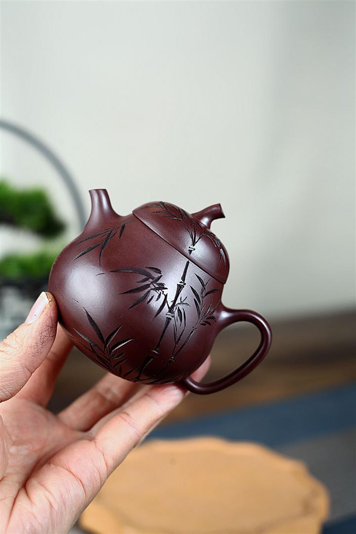 【作品介紹】此款壺形線條流暢,壺把,壺嘴,壺身壹氣呵成栩栩如生,是收藏把玩的好壺,泥料色澤古樸典雅,日久使用,漸露鋒芒,養成變化快,溫潤莊重,用其泡茶,使用的年代久,壺身就溫潤,泡出來的茶湯也就醇郁芳馨。