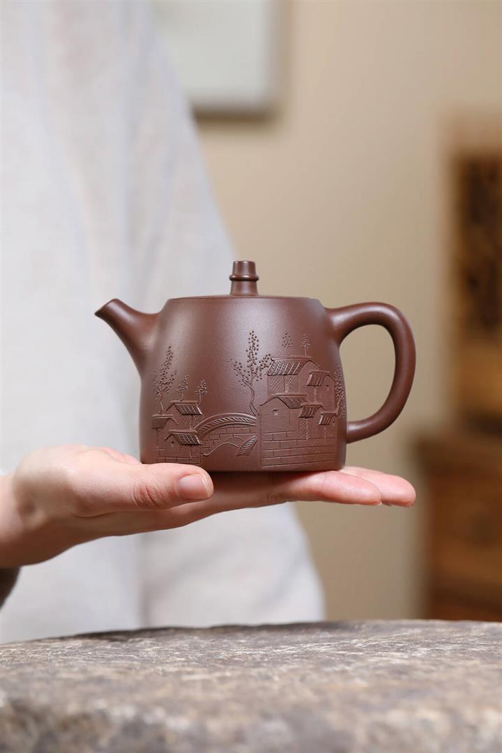 【作品介紹】此款壺形線條流暢,壺把,壺嘴,壺身壹氣呵成栩栩如生,是收藏把玩的好壺,泥料色澤古樸典雅,日久使用,漸露鋒芒,養成變化快,溫潤莊重,用其泡茶,使用的年代久,壺身就溫潤,泡出來的茶湯也就醇郁芳馨。