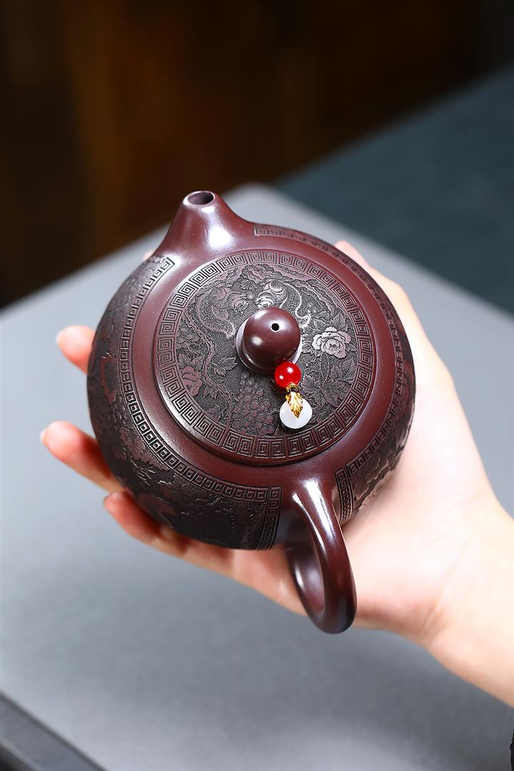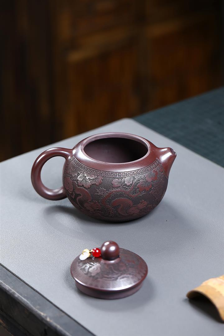 原礦紫泥泥繪暗香如意茶壺POT7531