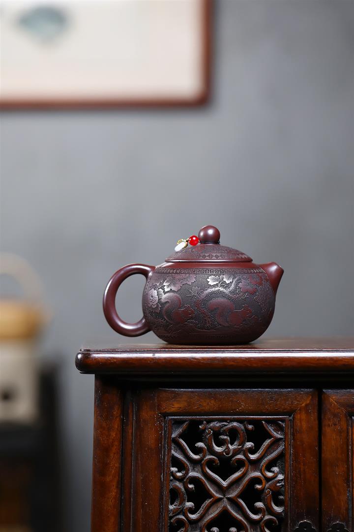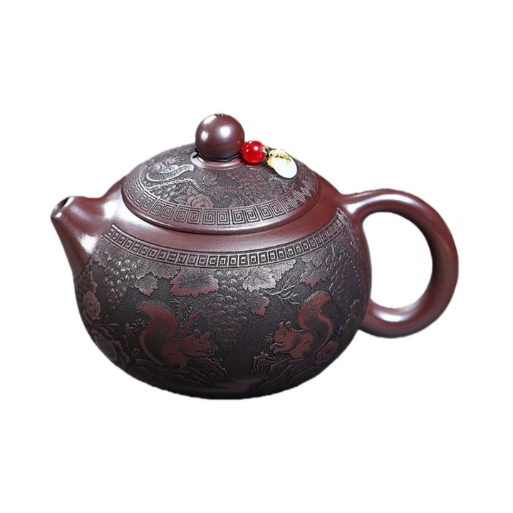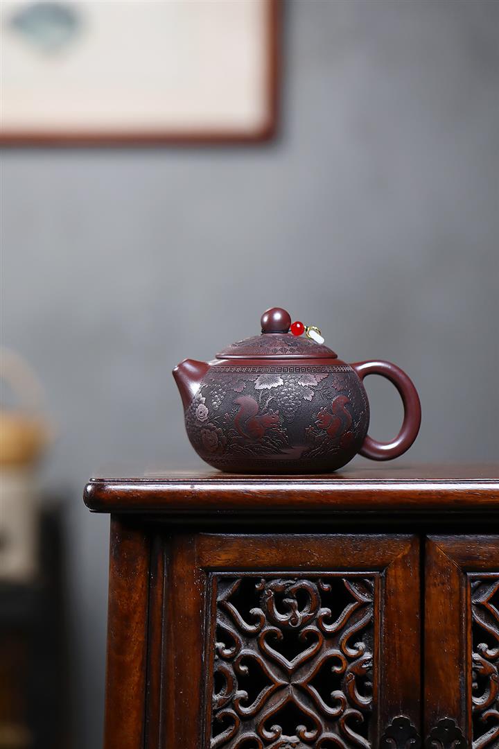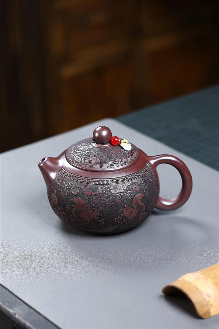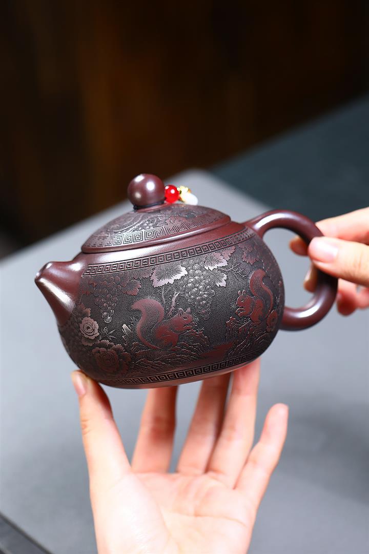 380cc原礦玄鐵石紅松鼠葡萄西施泡茶壺POT9836