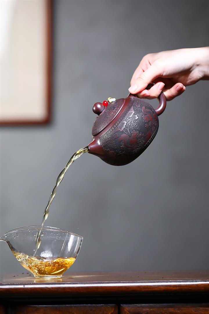 原礦大紅袍刻竹靜心德鐘茶壺POT7532
