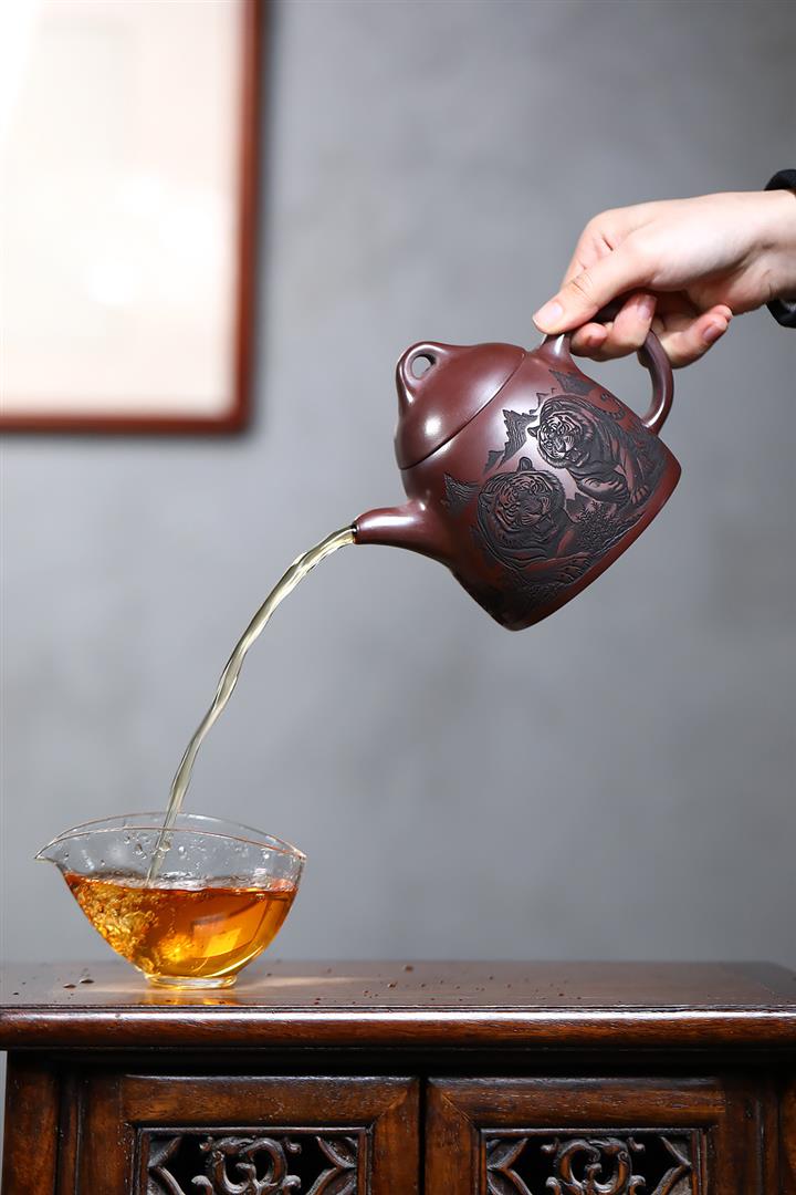 【作品介紹】此款壺形線條流暢,壺把,壺嘴,壺身壹氣呵成栩栩如生,是收藏把玩的好壺,泥料色澤古樸典雅,日久使用,漸露鋒芒,養成變化快,溫潤莊重,用其泡茶,使用的年代久,壺身就溫潤,泡出來的茶湯也就醇郁芳馨。