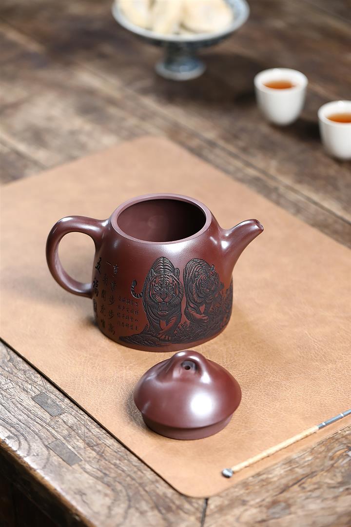 手工泡茶壺原礦紫泥刻繪雅方壺POT3953