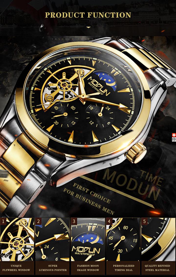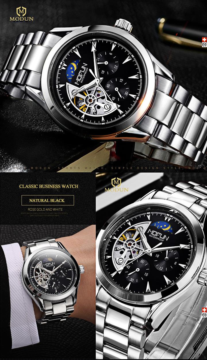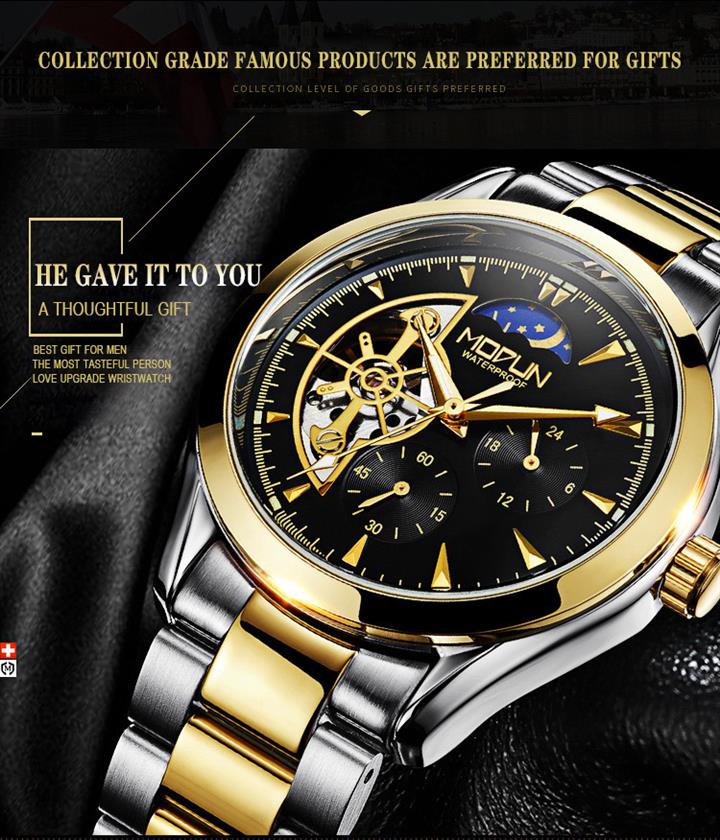 鏤空夜光六針三眼全自動機械錶Wat2095
