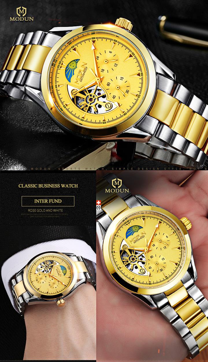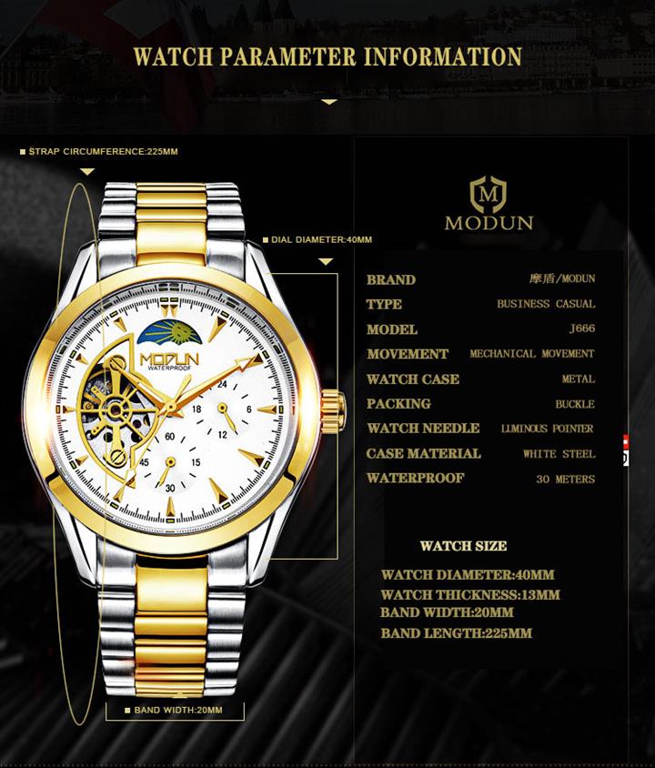 鏤空酒桶型夜光防水男士全自動機械表wat1946
