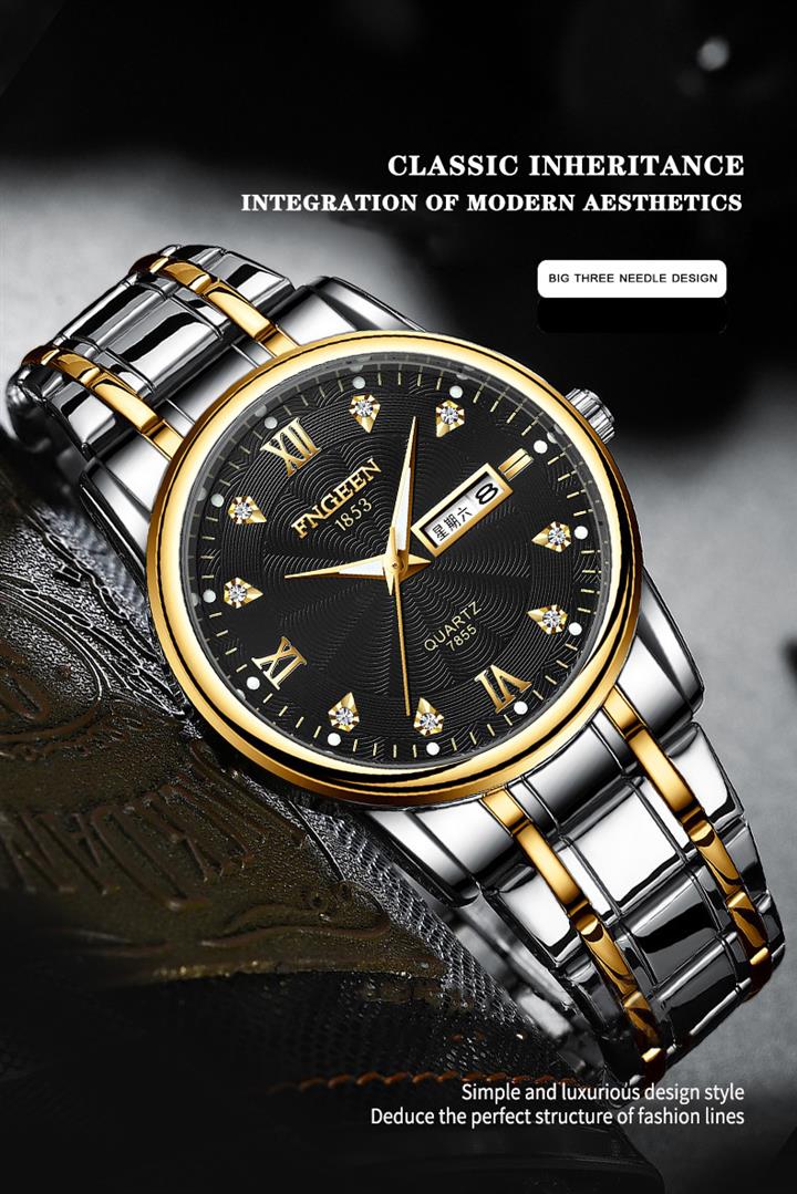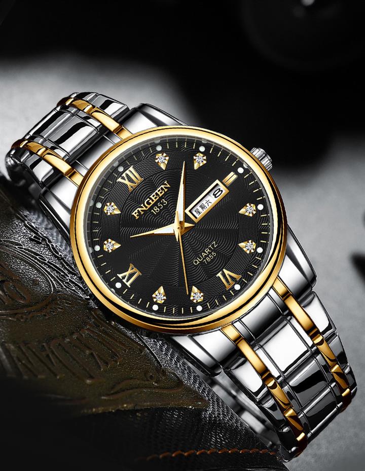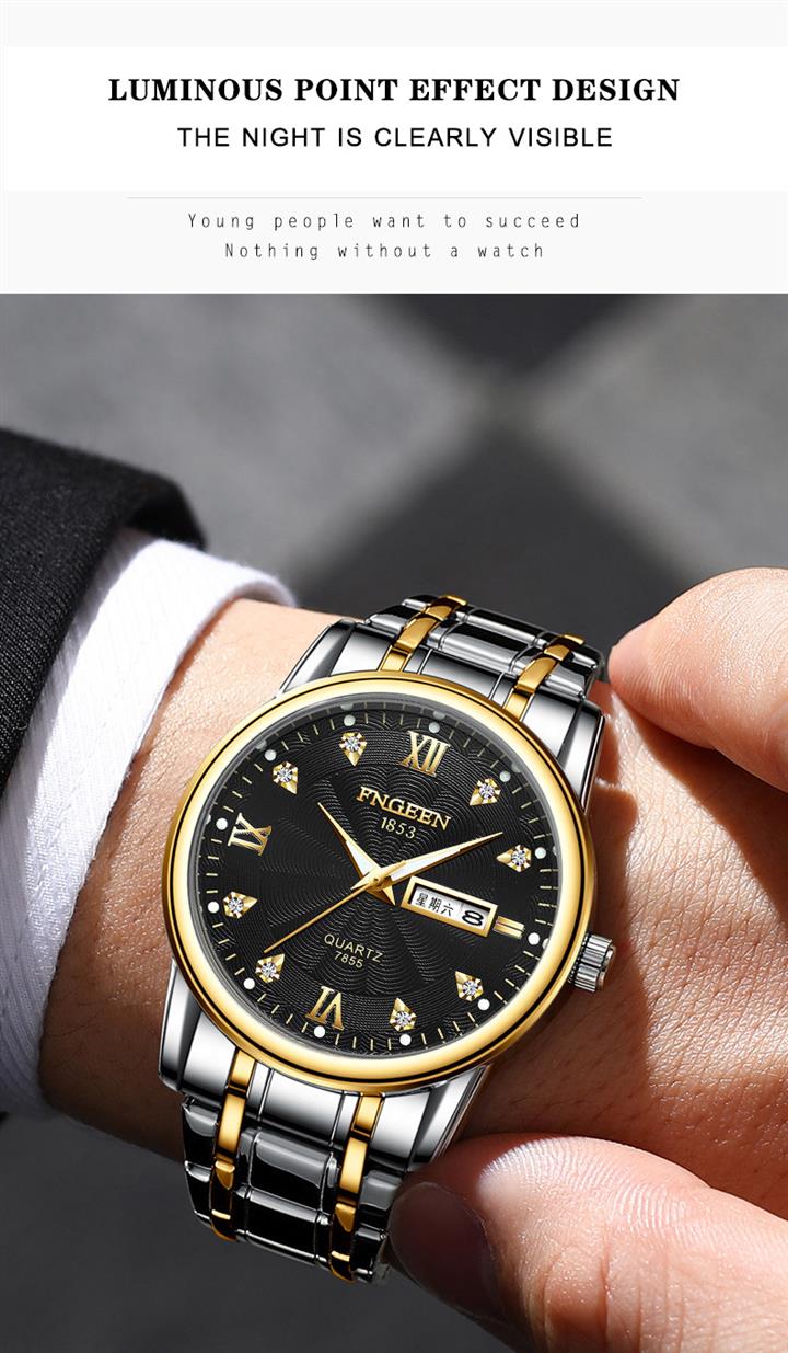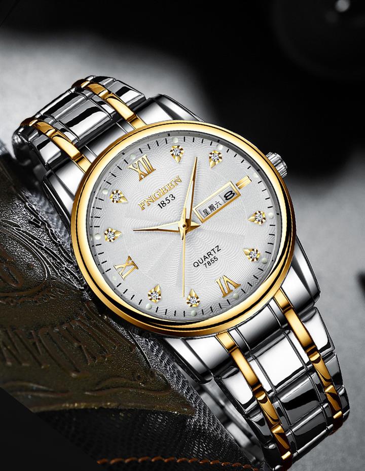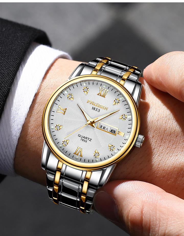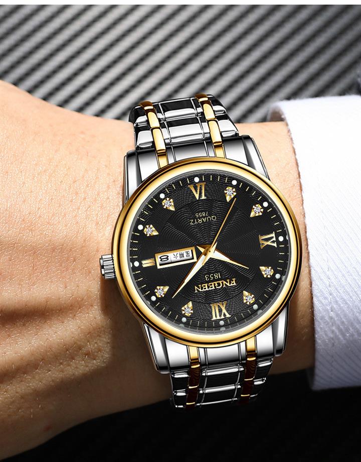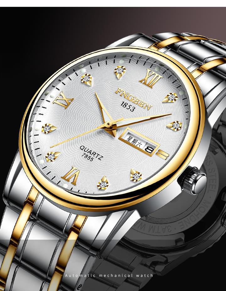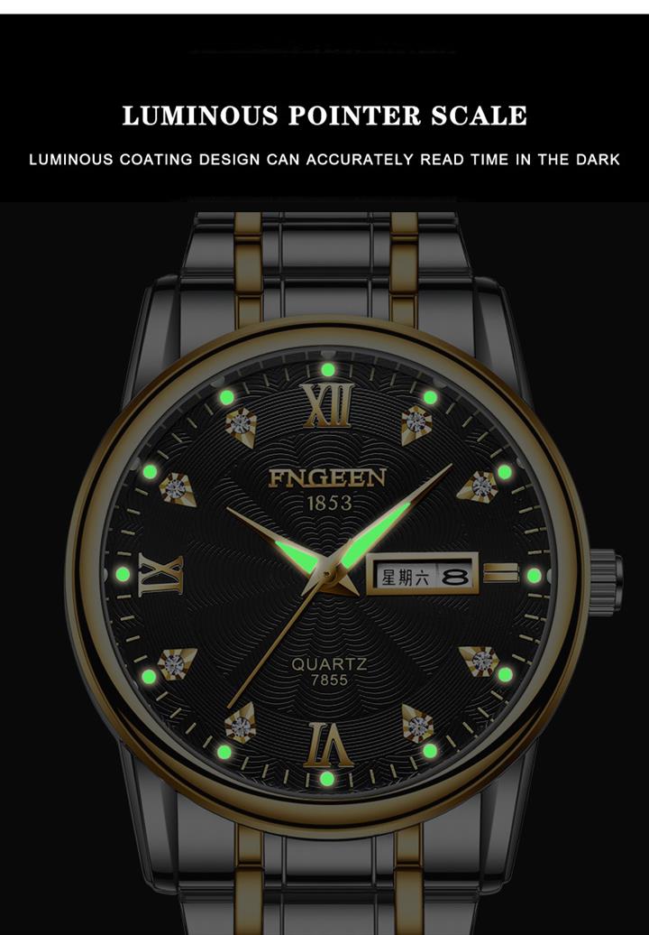 防水夜光雙日歷鑲鉆蝴蝶扣男表Wat2071