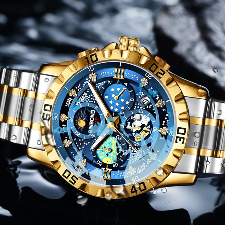 男士三眼錶盤鋼帶手錶 wat353
