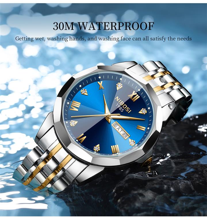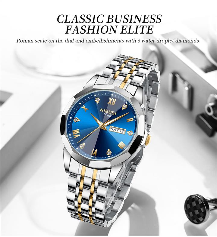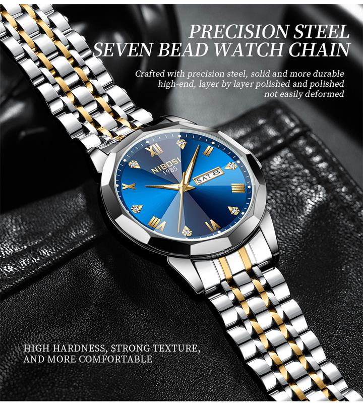 鑲鉆鋼帶男士手表夜光防水Wat2192