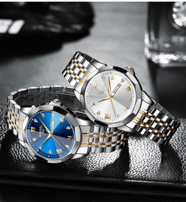 正品精鋼雙日歷防水男女款情侶錶Wat2030