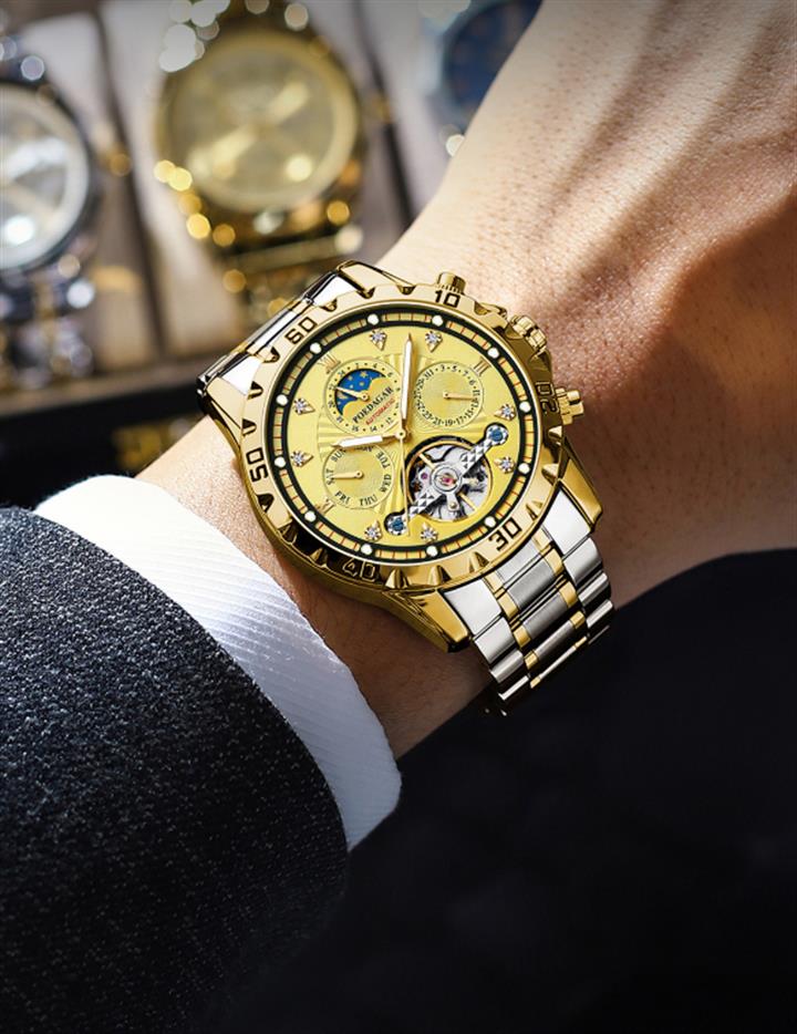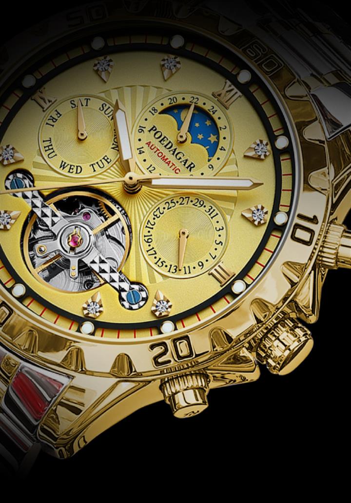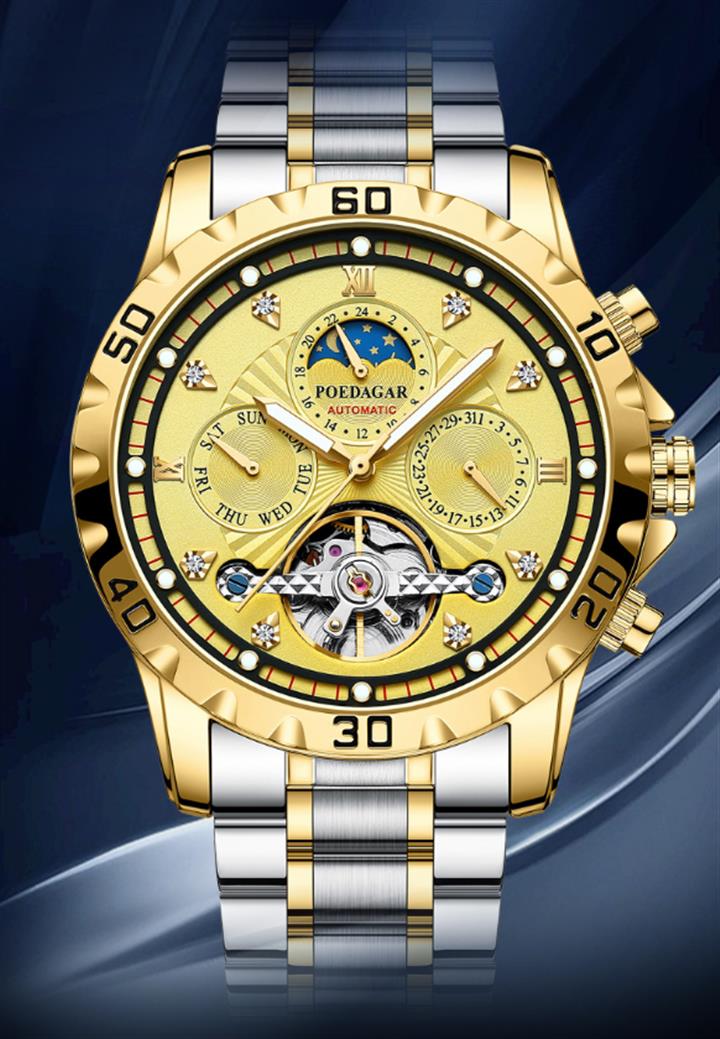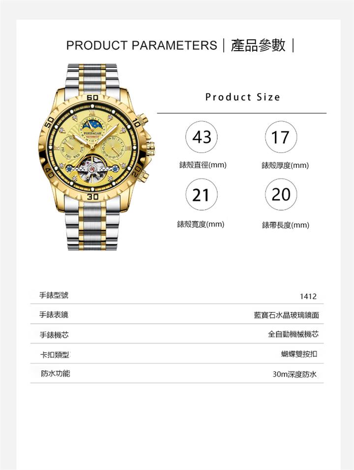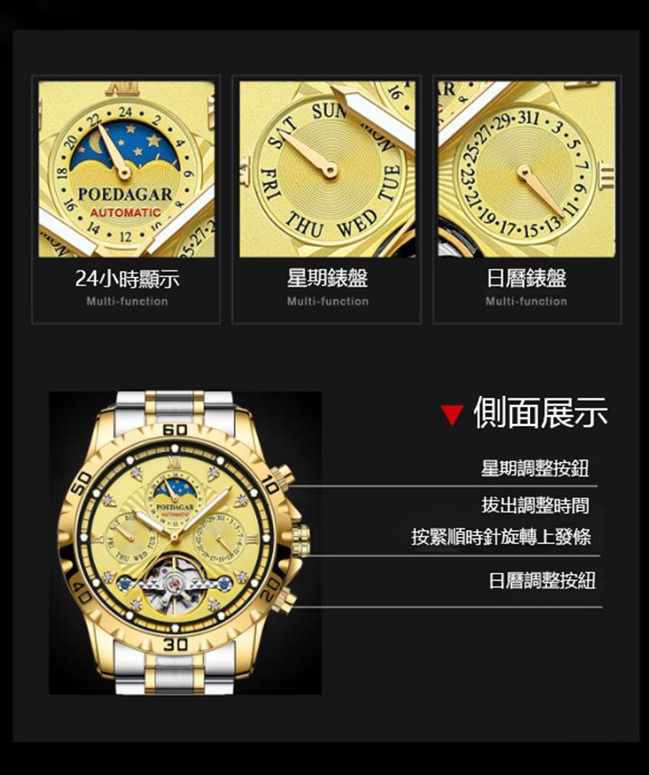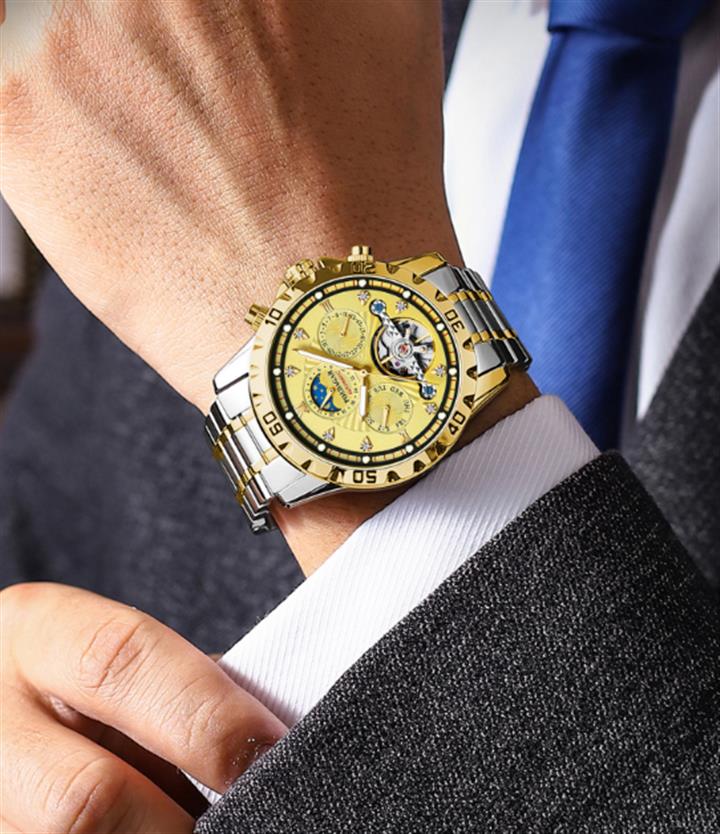 方形男士全自動機械鏤空防水腕錶 wat1844