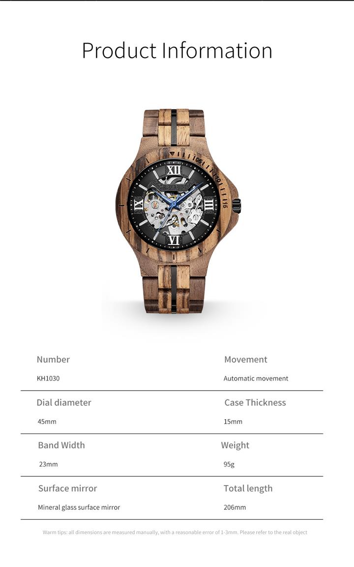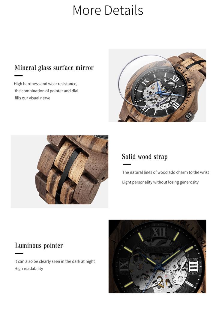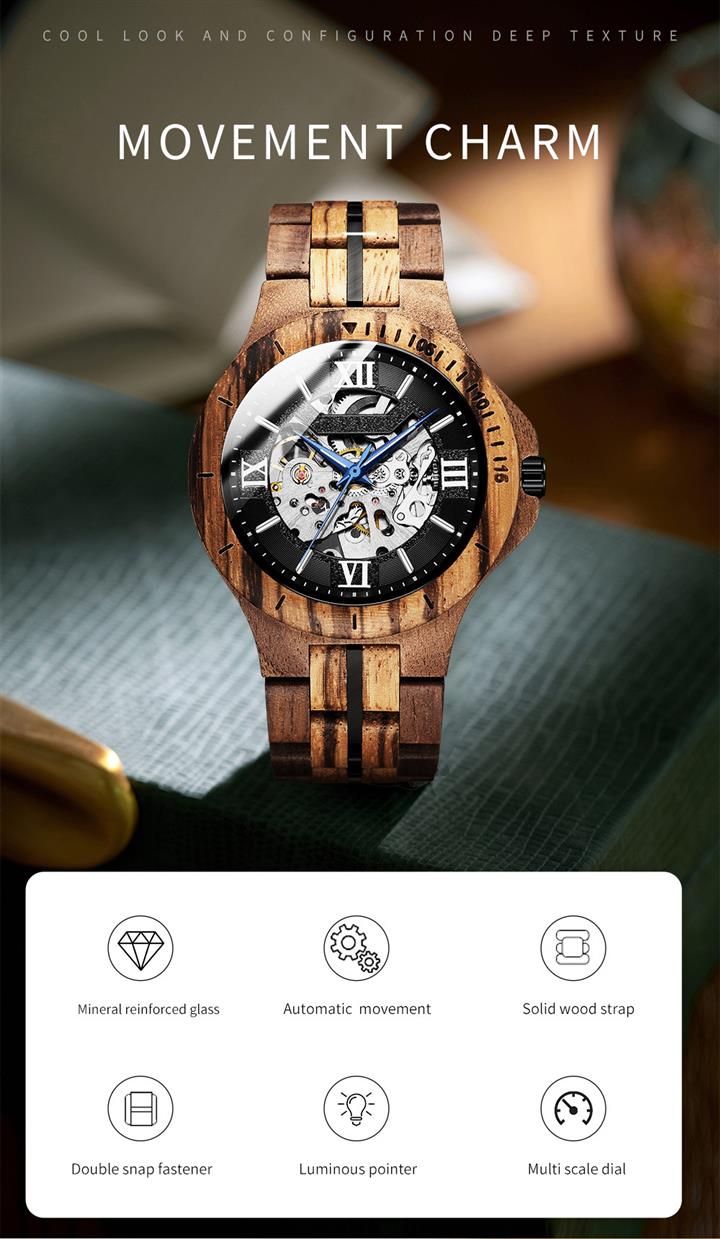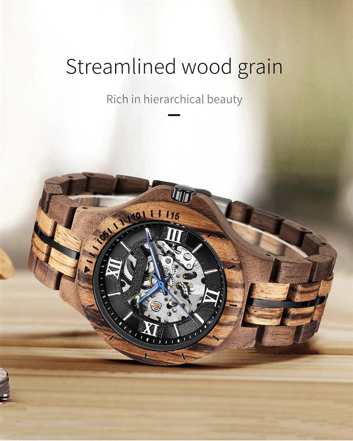 純木手工個性鏤空機械表Wat2256