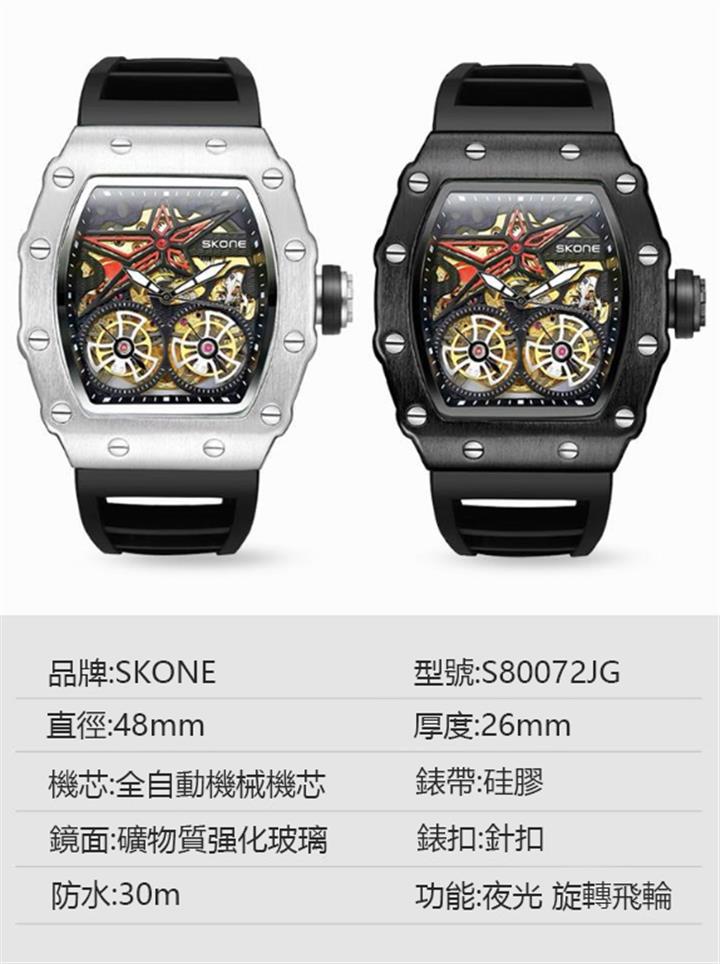 鏤空夜光六針三眼全自動機械錶Wat2095