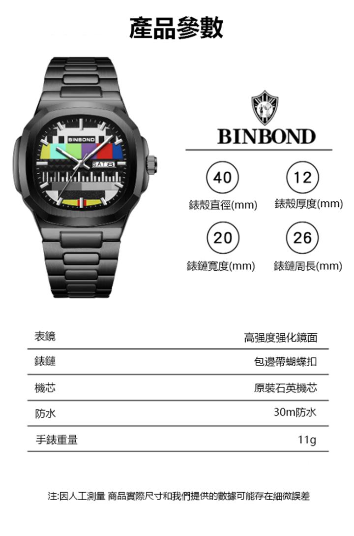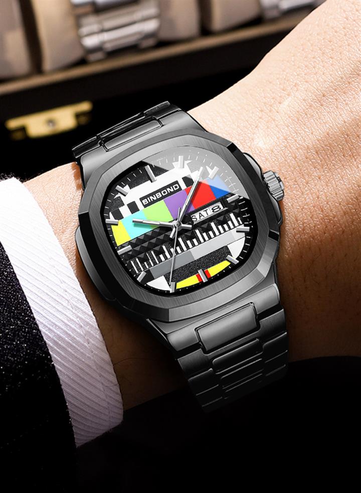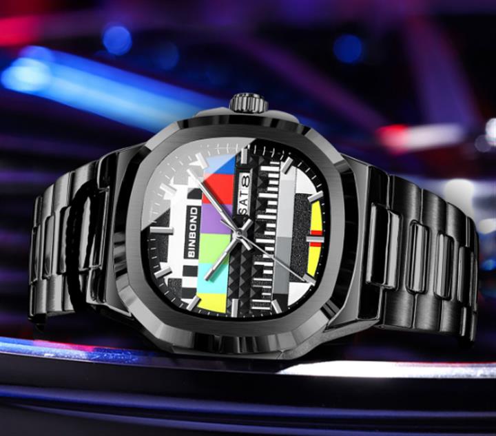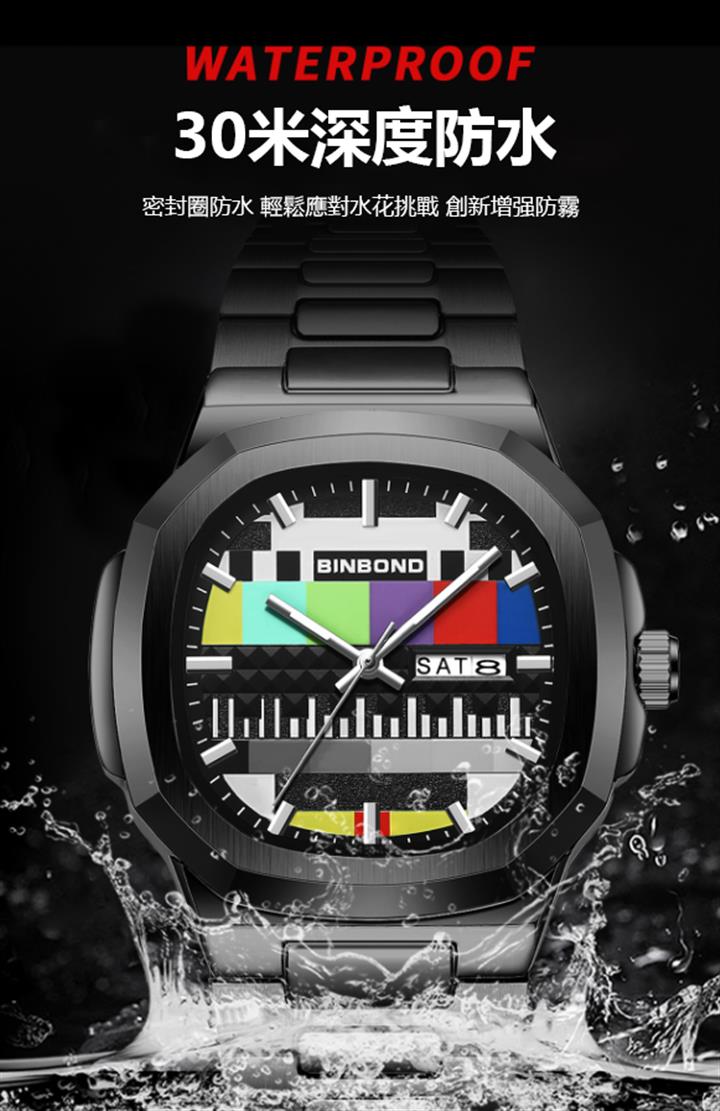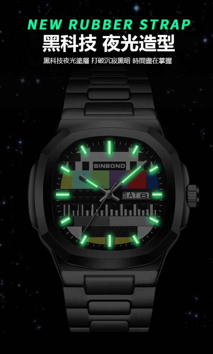 防水夜光雙日歷鑲鉆蝴蝶扣男表Wat2071