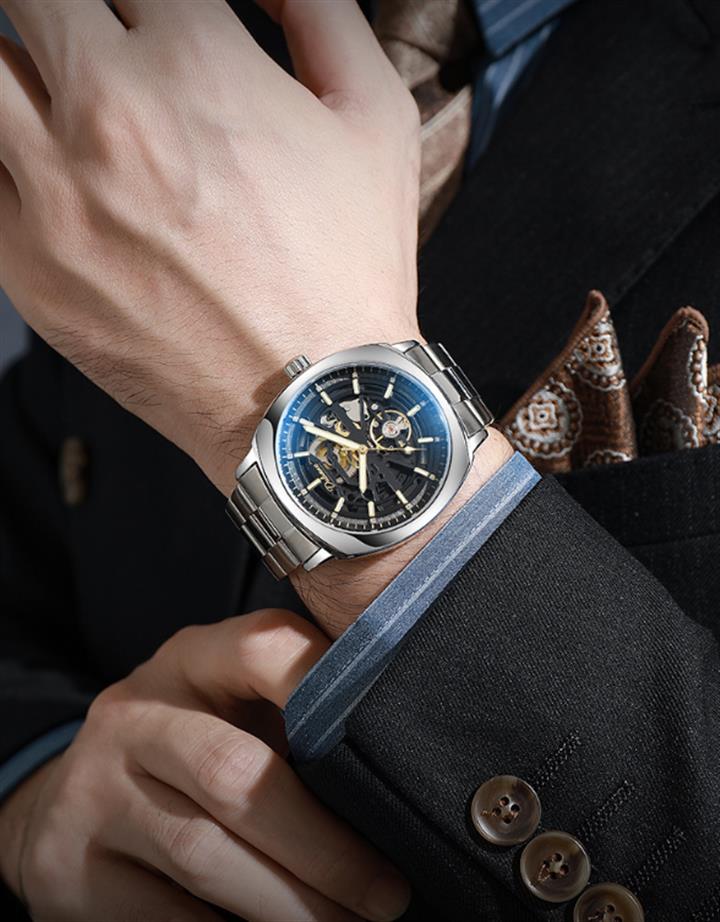 男士時尚不鏽鋼陀飛輪機械腕錶 wat391