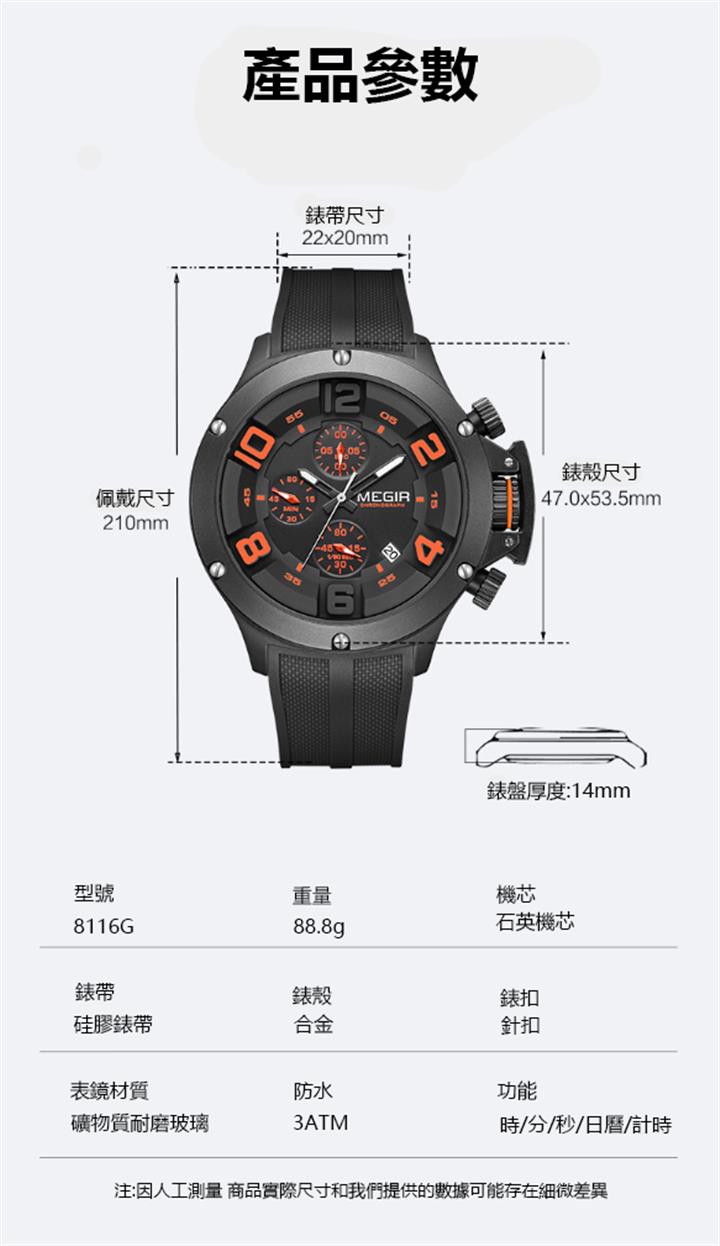 高檔防水大表盤超大新日歷手表Wat2036