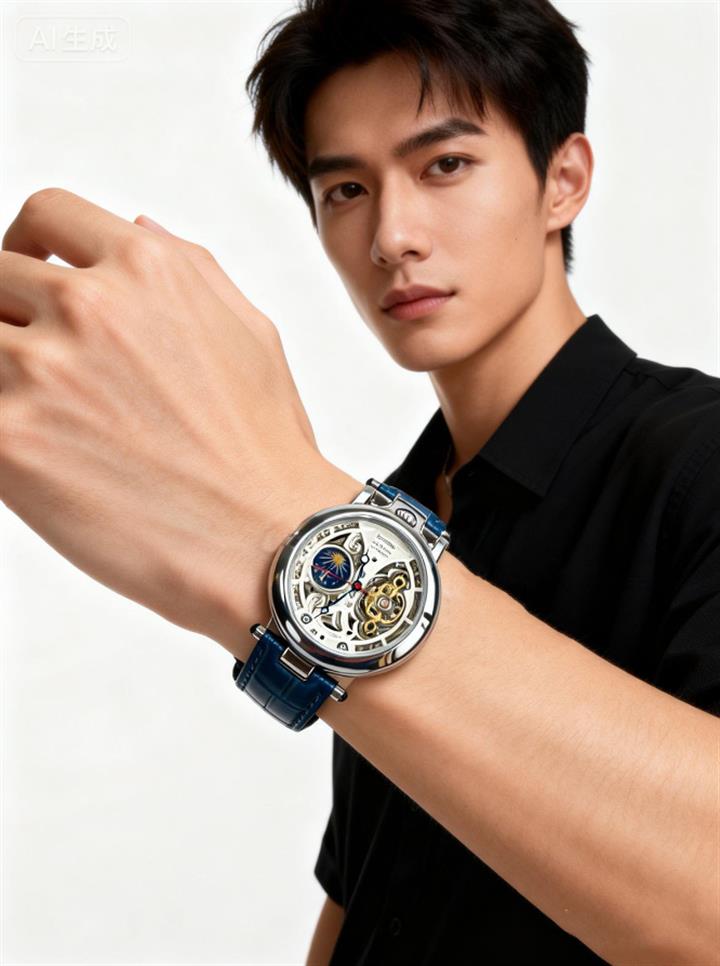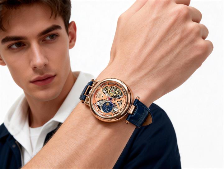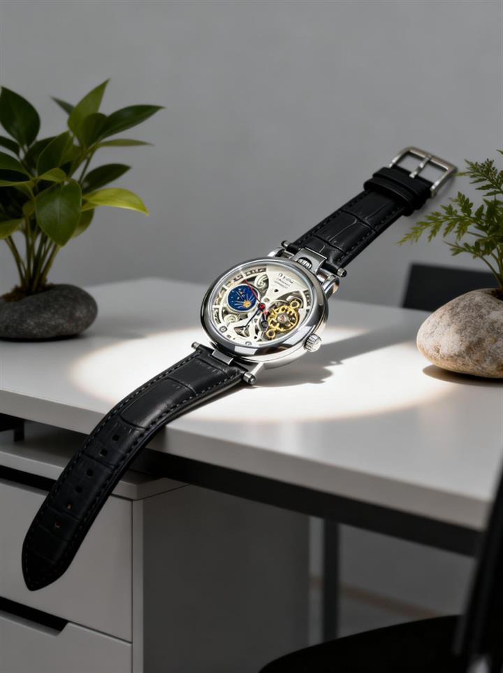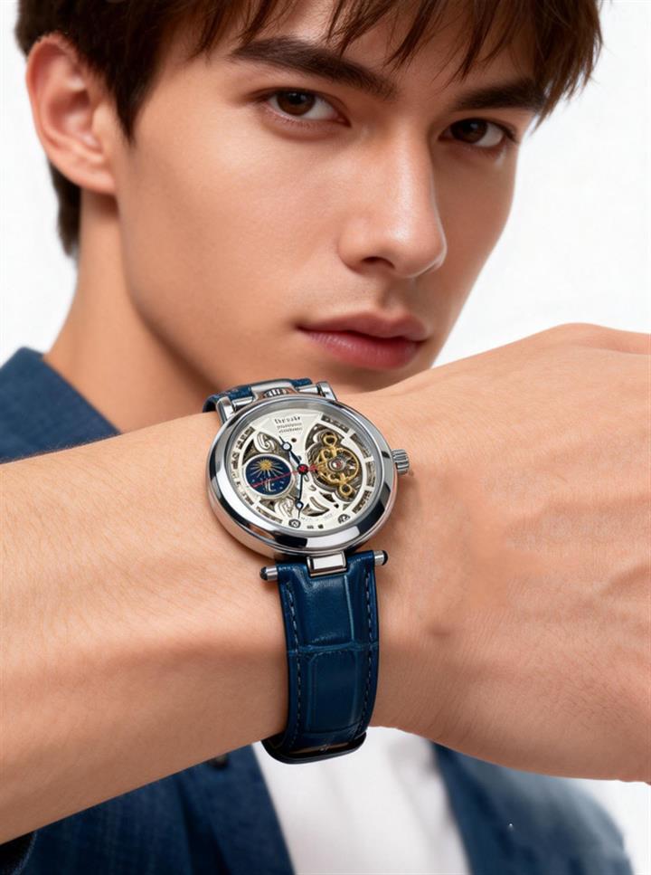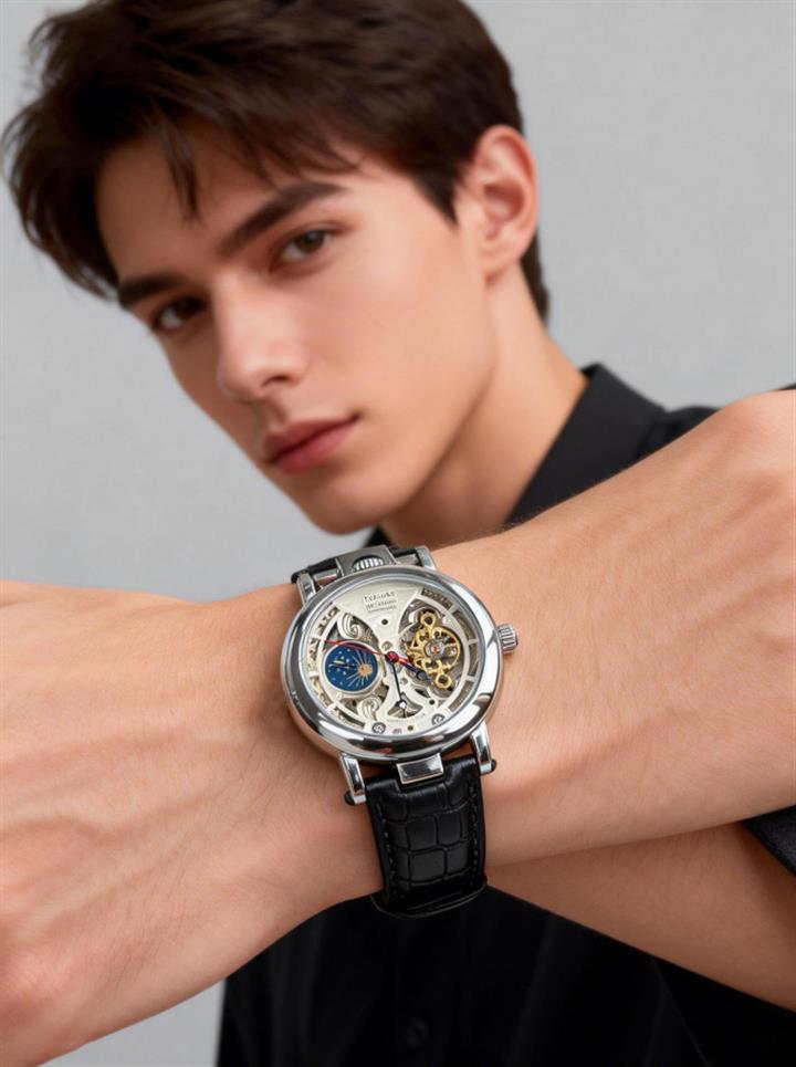鏤空夜光蟲洞概念酒桶防水機械表wat1950
