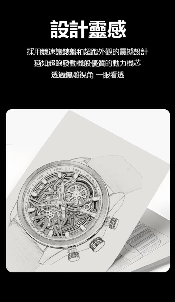 鏤空酒桶型夜光防水男士全自動機械表wat1946