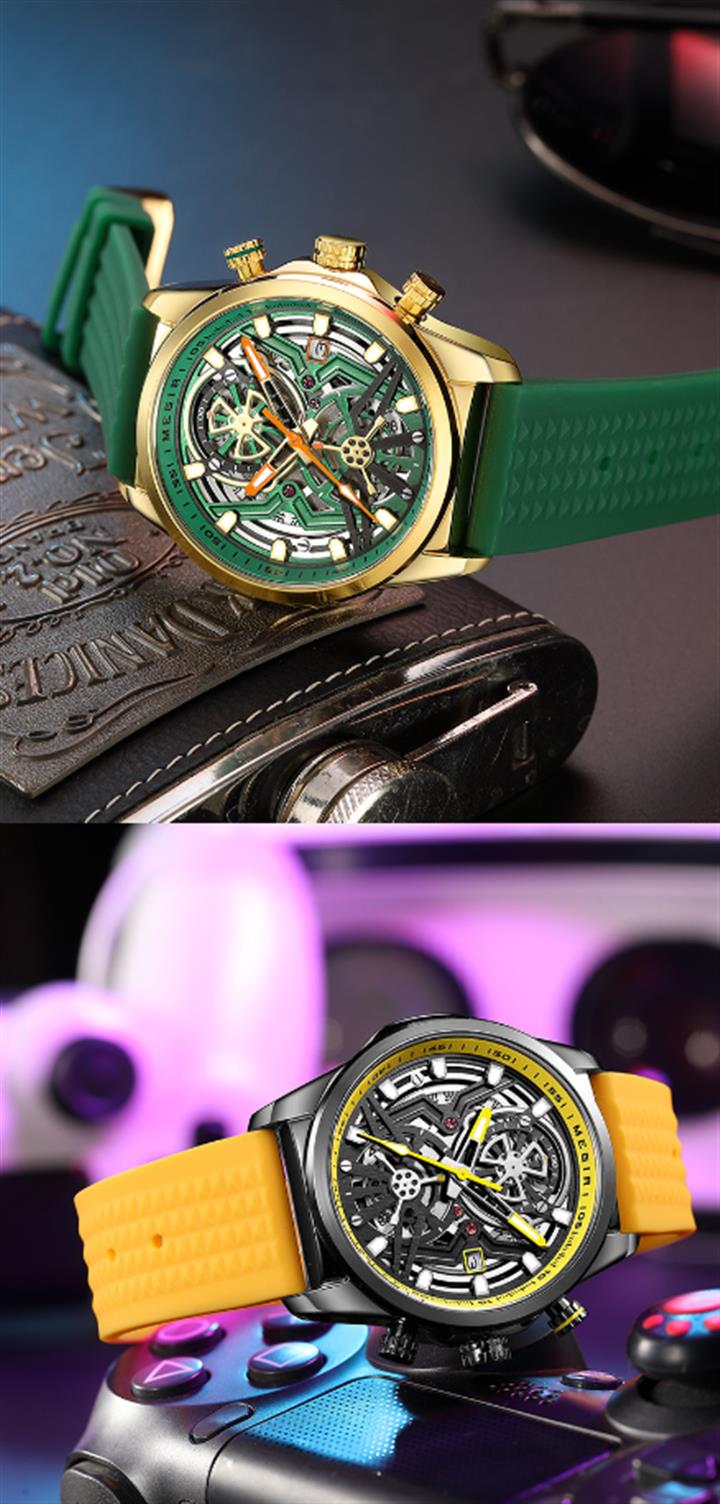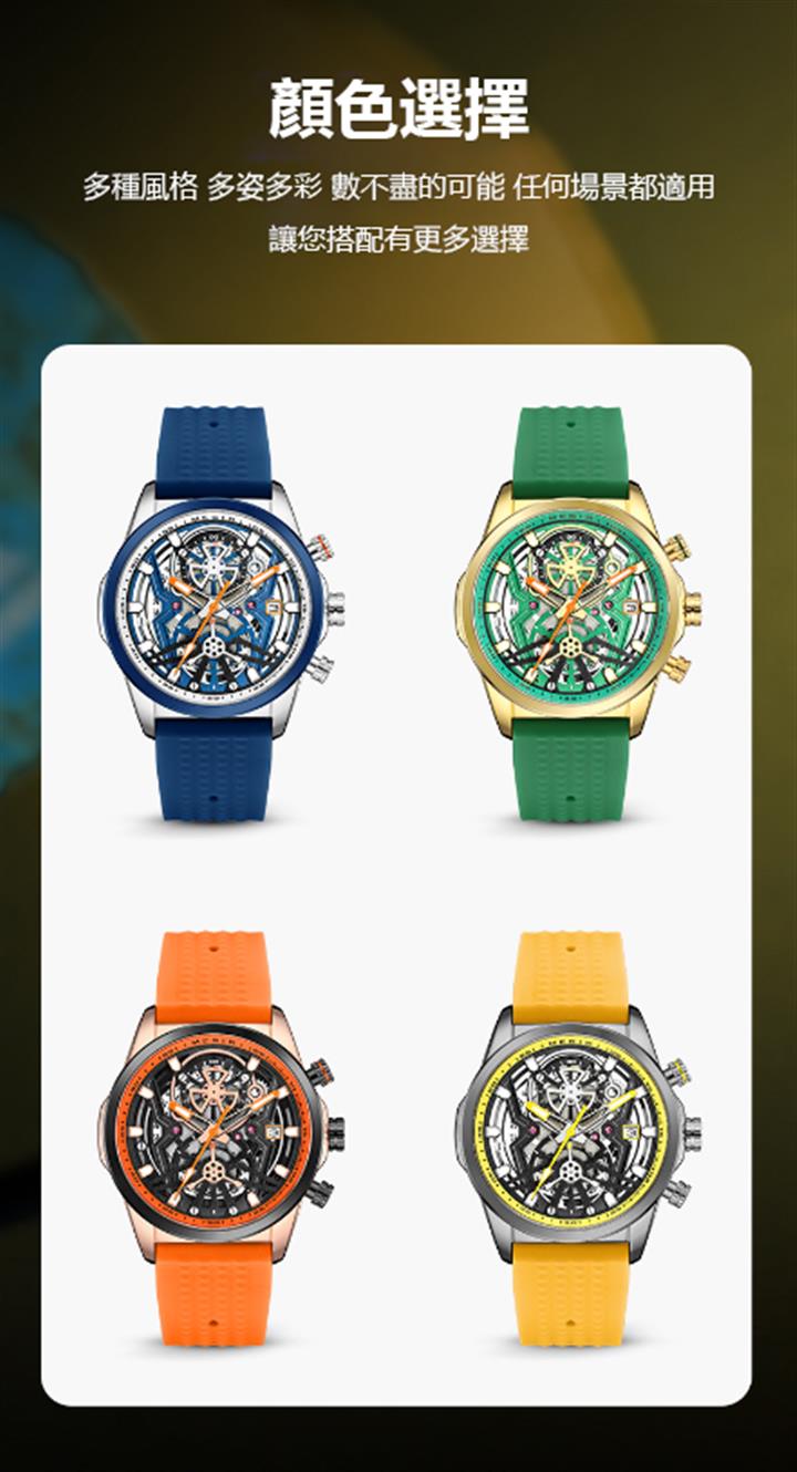 多色硅膠錶帶酒桶型機械運動錶 Wat1928