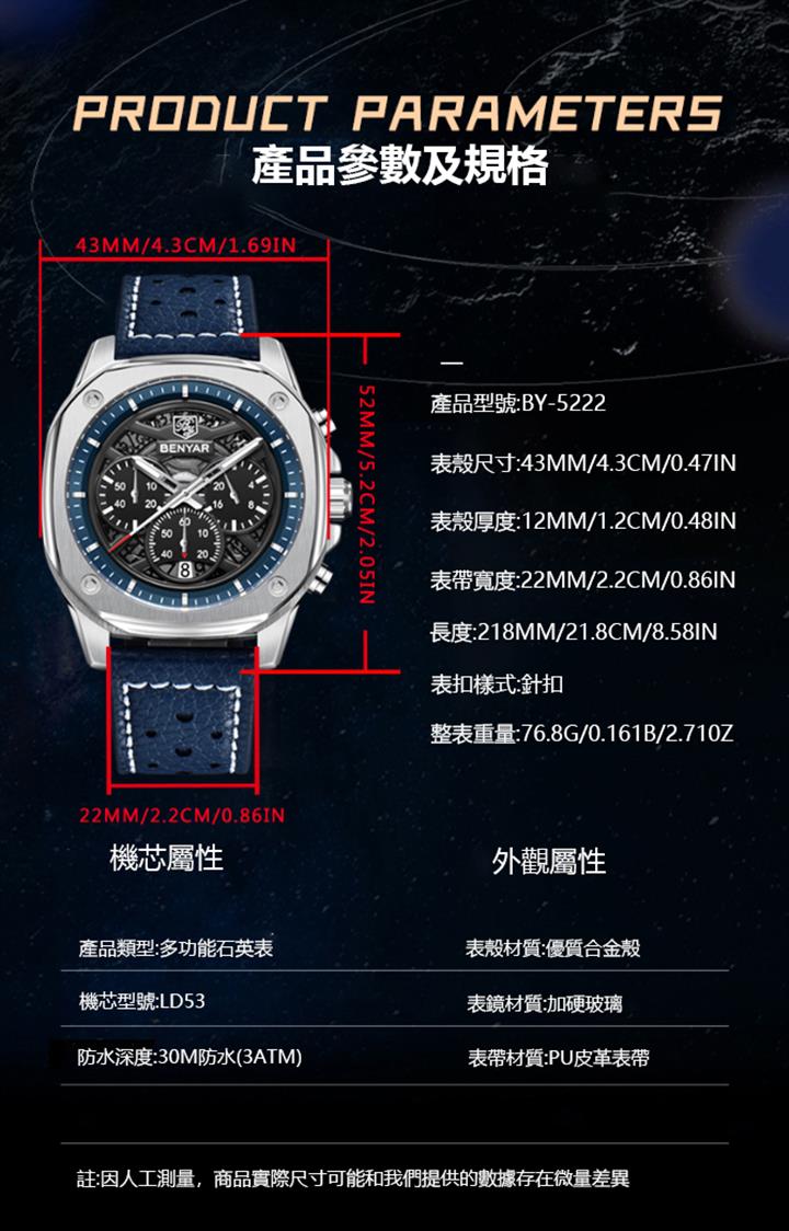 真三眼六針手錶Wat2005