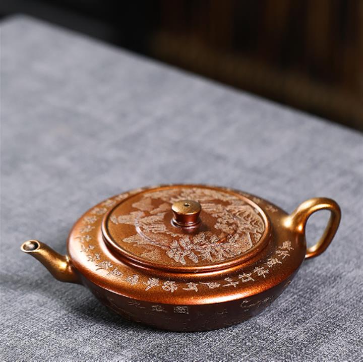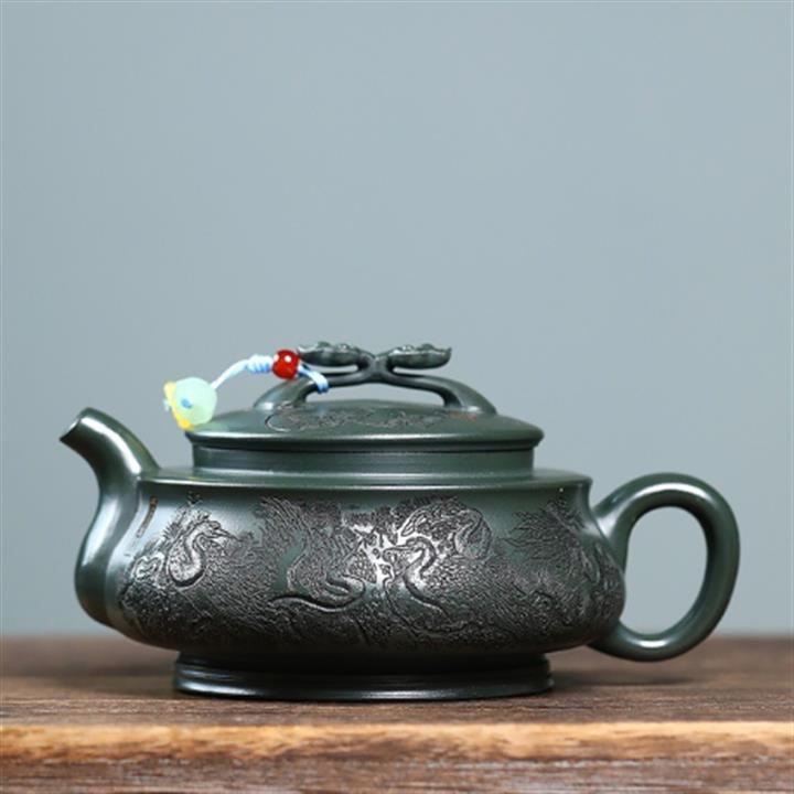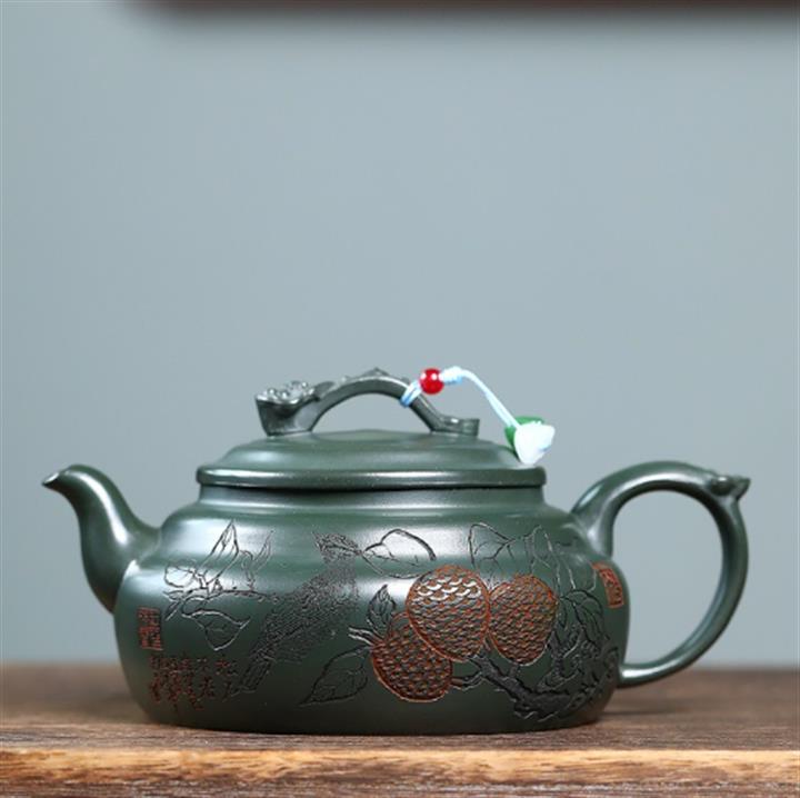 400cc原礦墨綠泥刻繪如意松趣茶壺POT8304