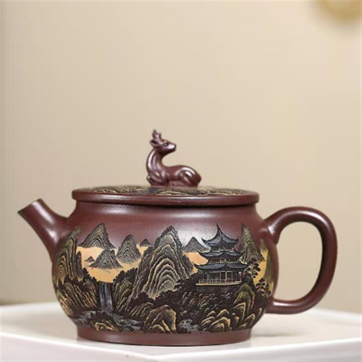 150cc原礦紫泥手工刻繪八方來財茶壺POT8465