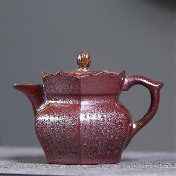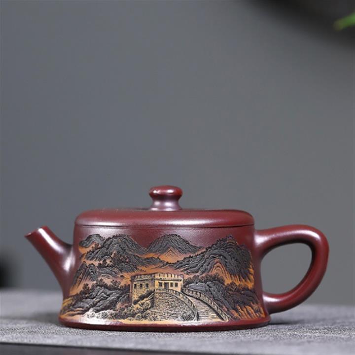290cc原礦古銅泥彩刻江山攬勝茶壺POT8383