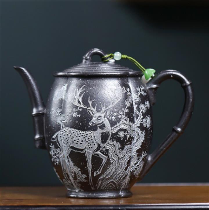 330cc原礦玄鐵星砂松鹿承禧茶壺POT9079