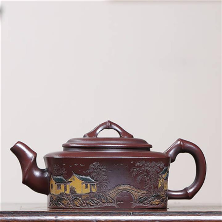 240cc龍山古烏泥山水四方竹段茶壺POT9036