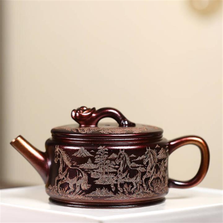 330cc原礦老紫泥馬到成功如意漢瓦茶壺POT8490